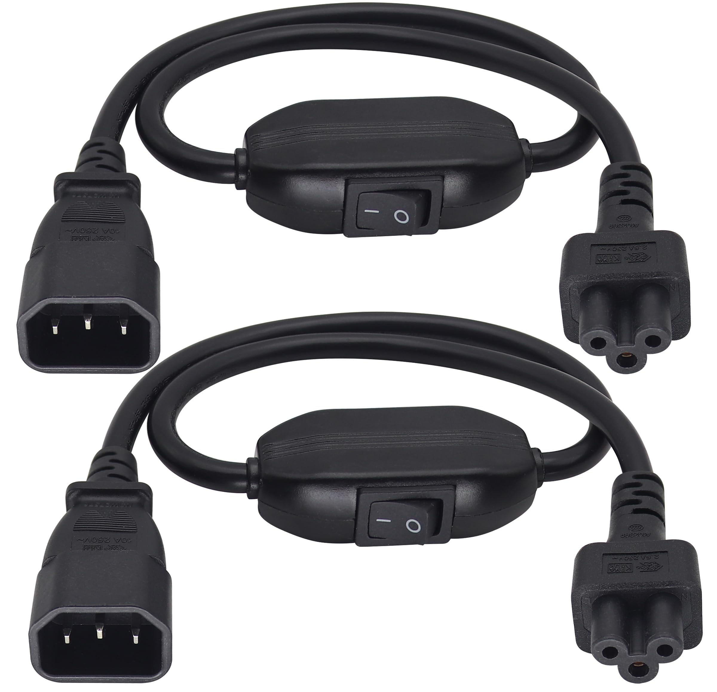 AAOTOKK 2-Pack C14 to Plum Blossom Socket C5 Power Cord,IEC C5 Female to C14 Male with Switch 10A-250V AC Power Extension Cord,Used for PDU Servers,