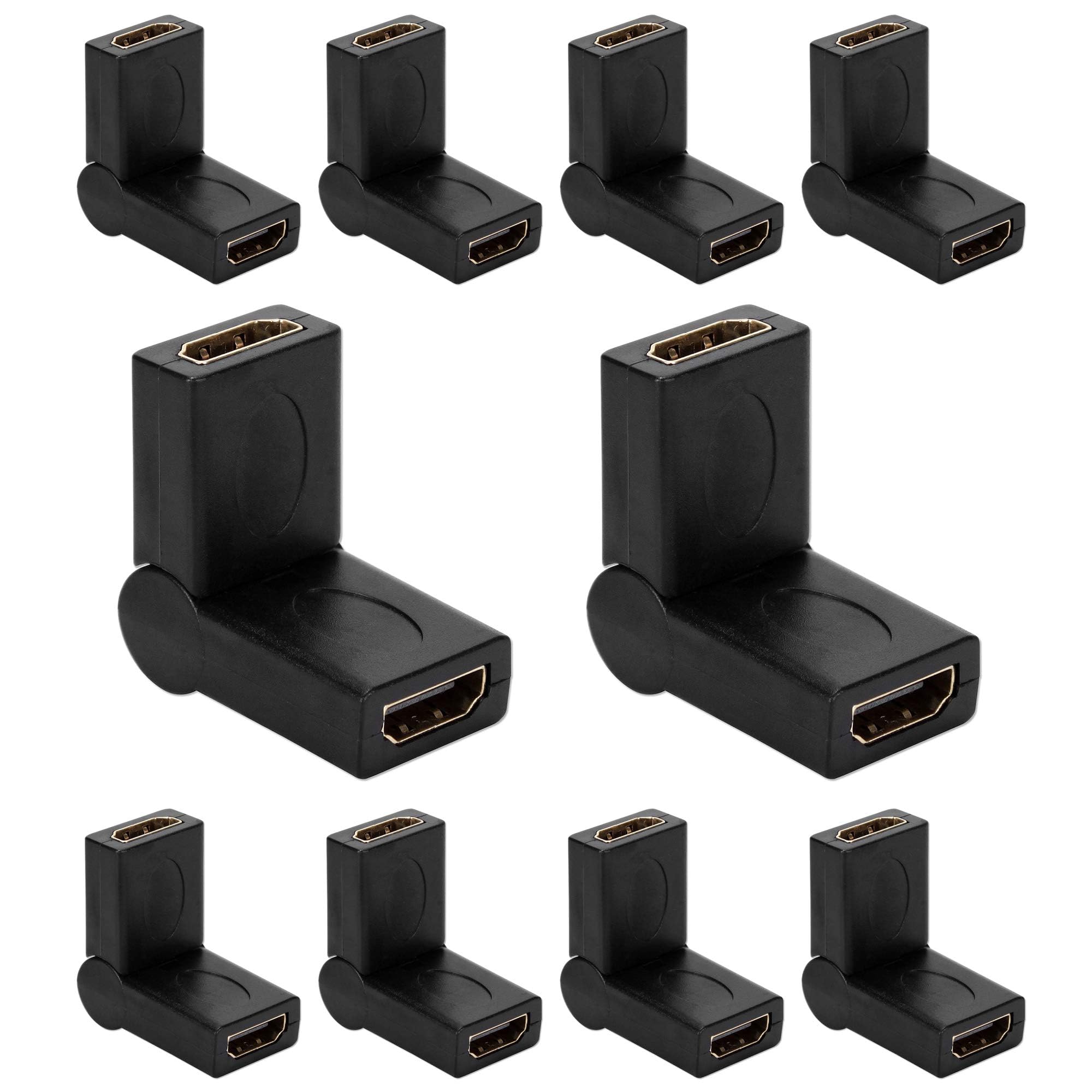 Cmple - [10 Pack HDMI Extender 4K HDMI Swivel Adapter, Female to Female Swiveling Port Saver (90 Degree Up & Down) Extension for Video Cables, TV,