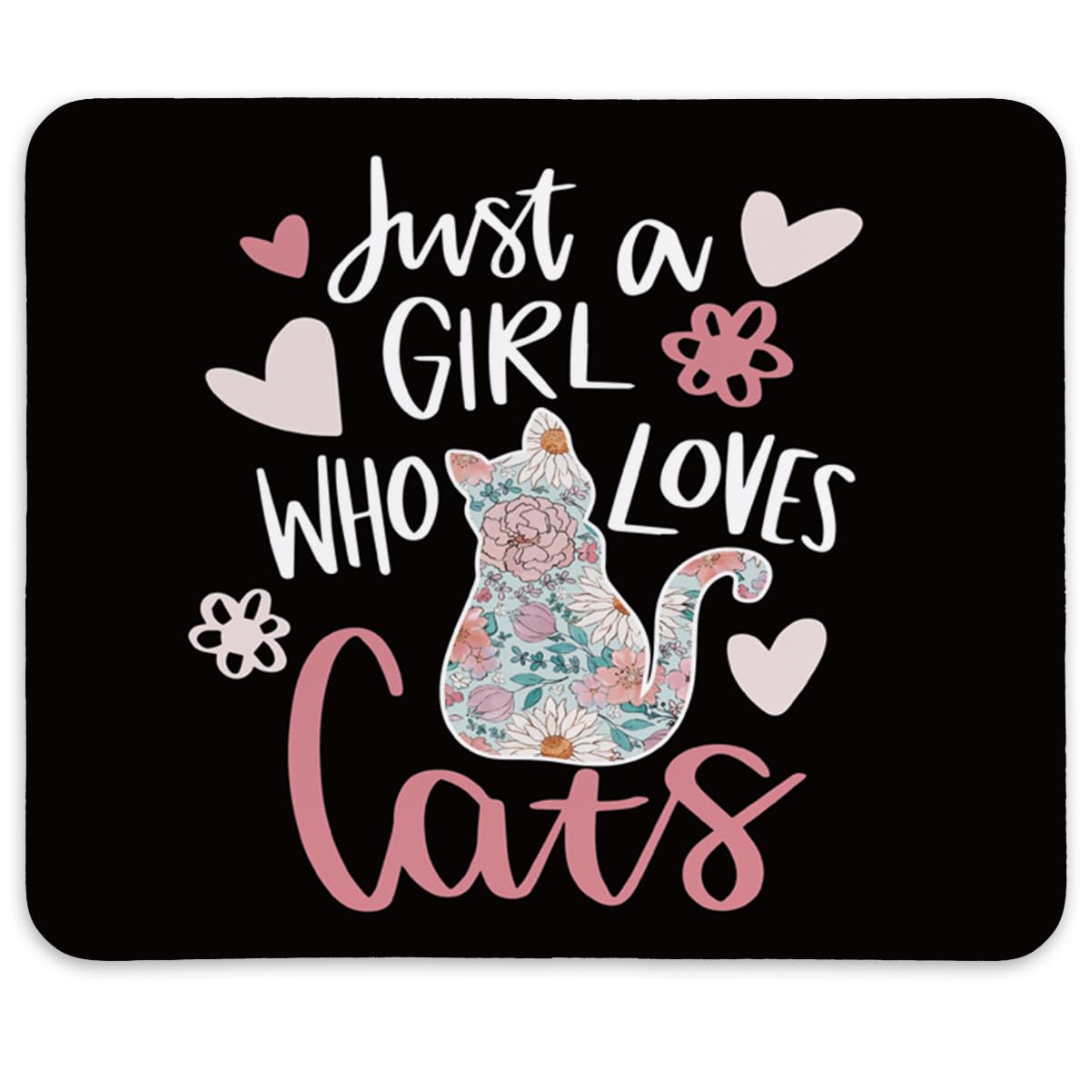 KDHTY Just A Girl Who Loves Cats,Black Cat Cute Mouse Pads for Desk Home Office Computers Laptop,Cat Gifts for Cat Lovers,Non-Slip Rubber Base Mouse