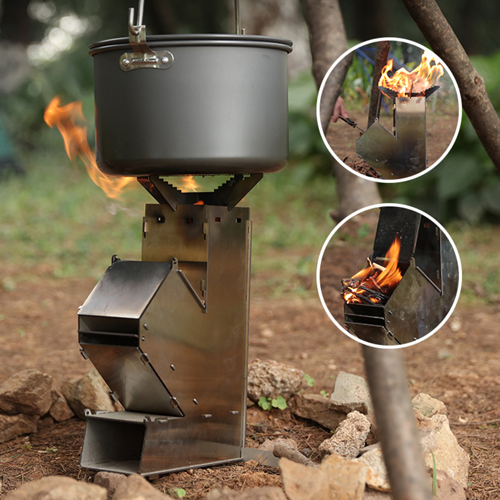 Portable Camping Stove Stainless Steel Rocket Wood Burner For Outdoor BBQ Portable Camping Stove Stainless Steel Rocket Wood Burner For Outdoor BBQ