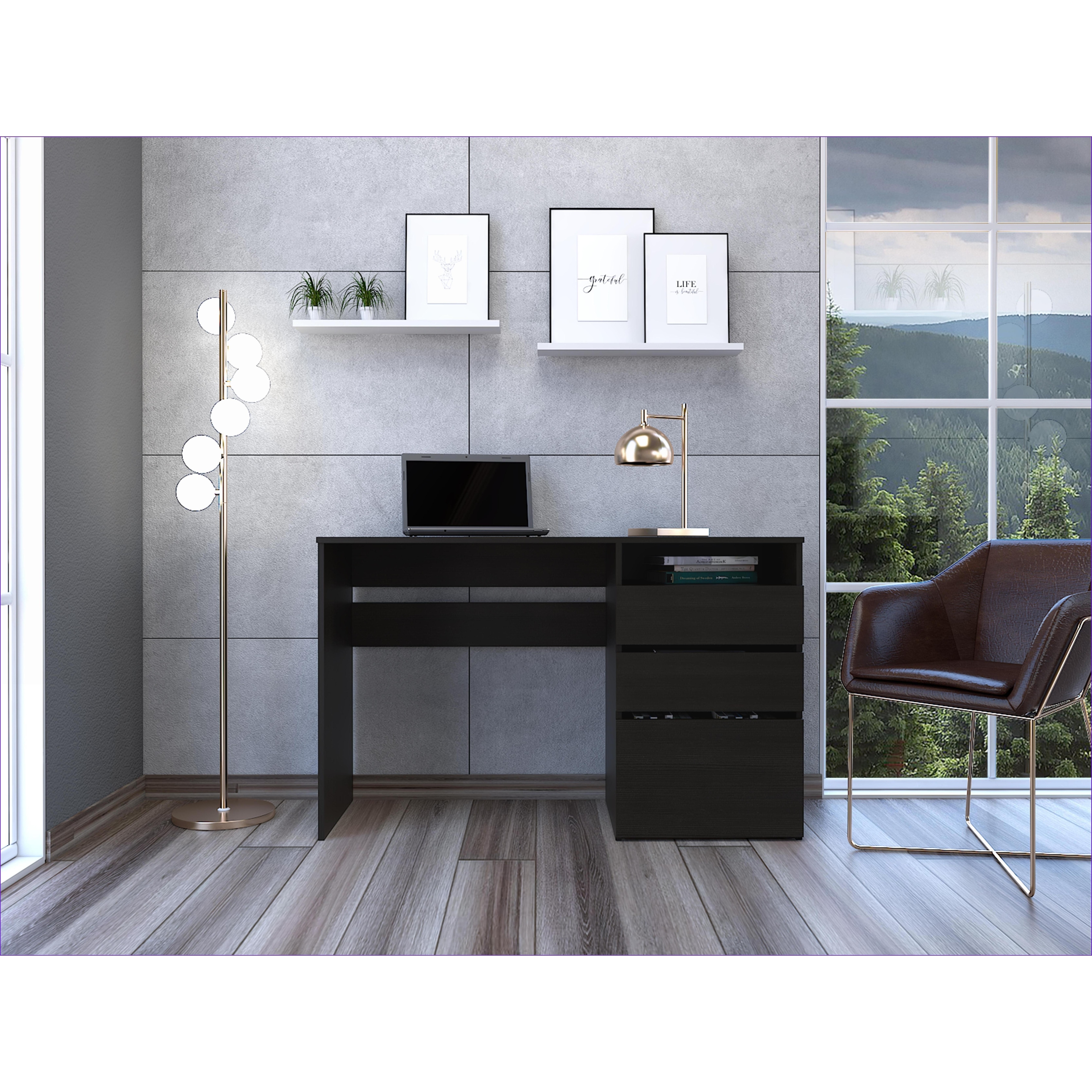 Desks, Compact 47.4in Wide Computer Desk with 3 Drawers and Cubby Shelf, Black, Particle Board