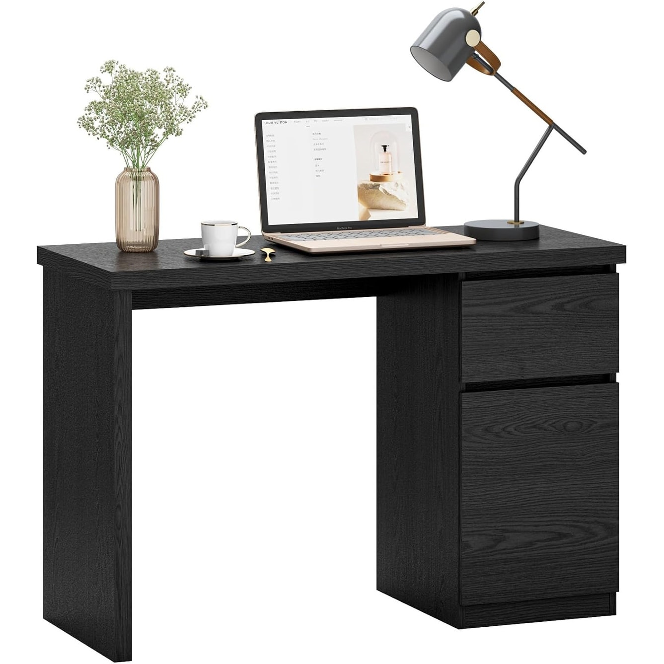 43 Inch Modern Wood Computer Desk with Drawer and Storage Cabinet, Space-Saving Home Office Desk, Black