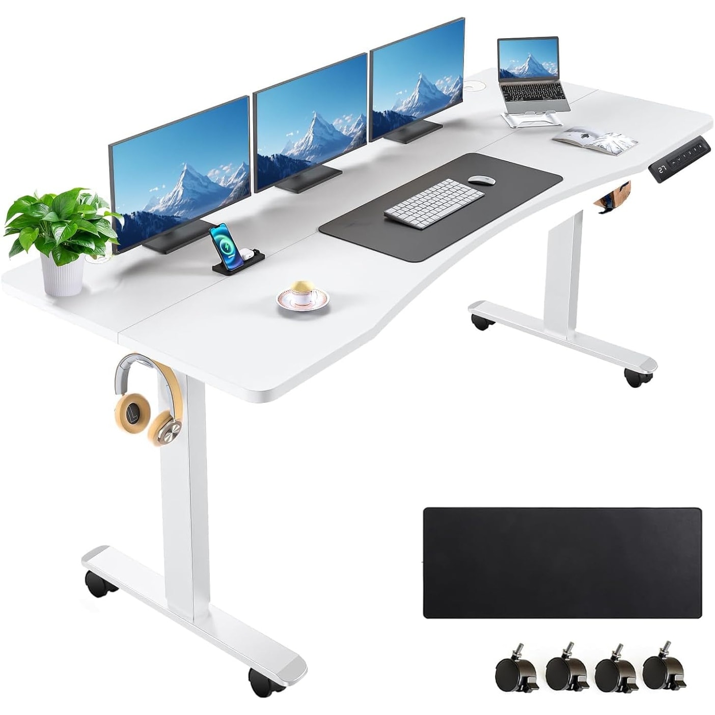 Adjustable Height Electric Standing Desk with Casters, Mouse Pad, and Headphone Hook, 63 x 24 Inches
