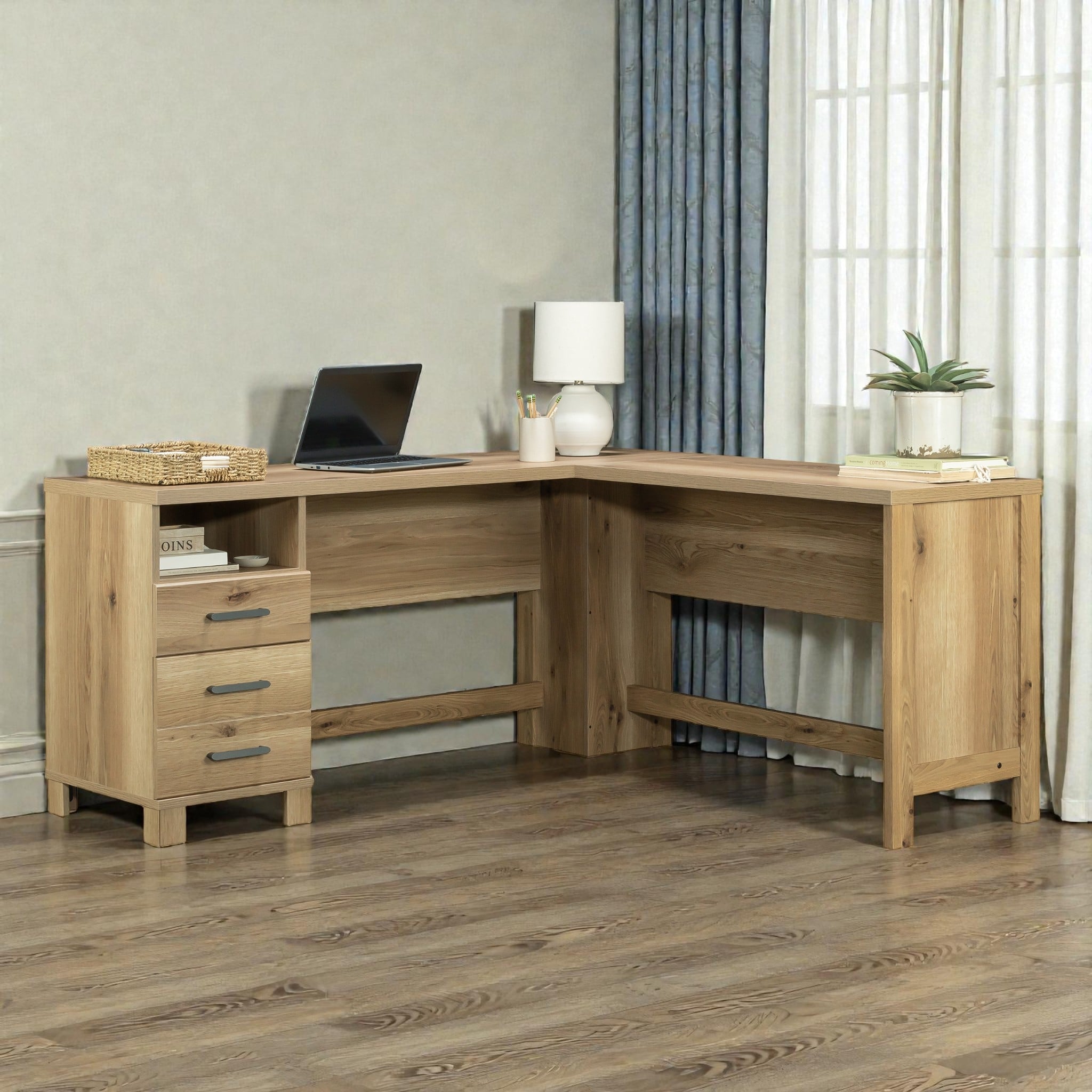 Product Overview Upgrade your workspace with this functional L-shaped desk designed for home offices, study areas, and creative workspaces.