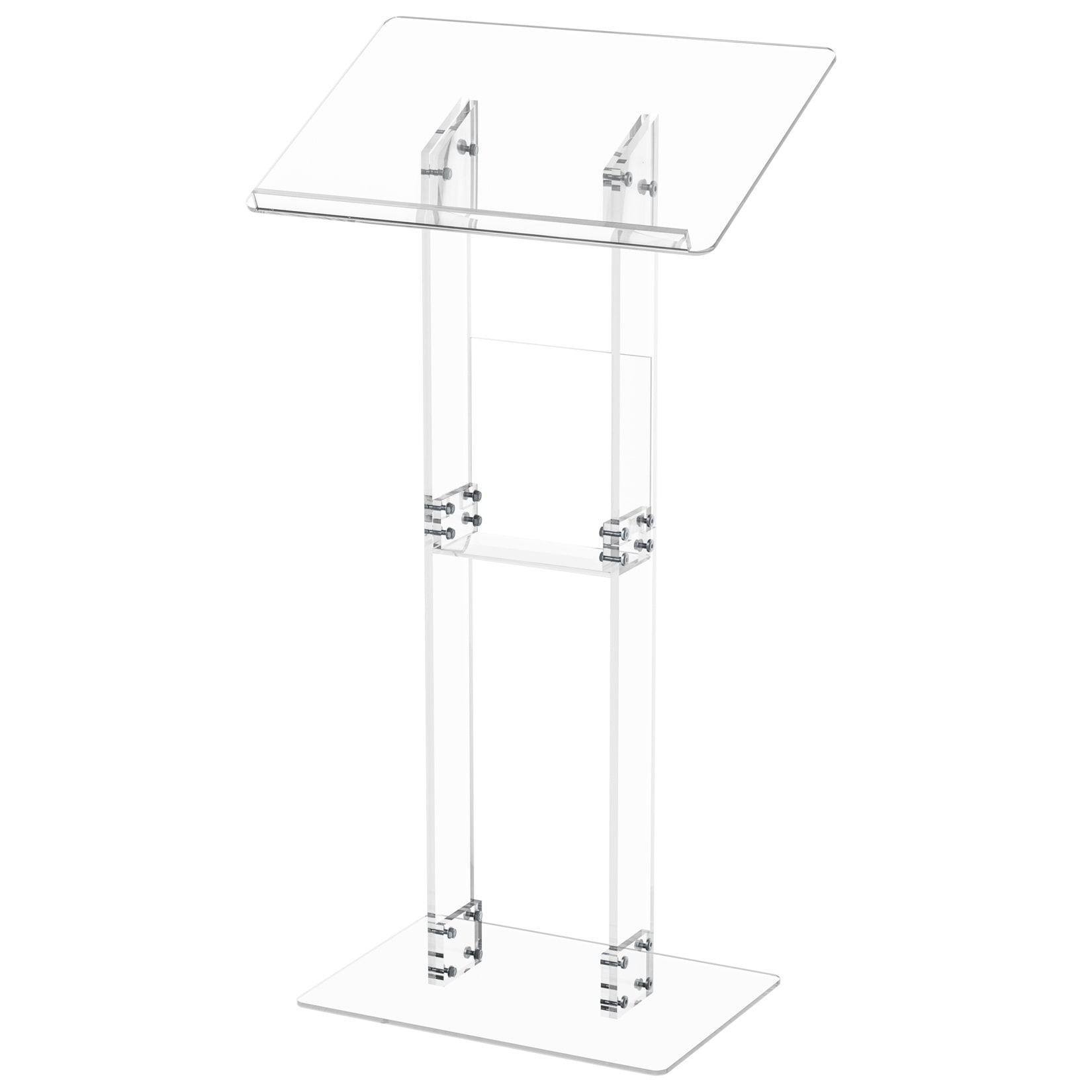 This acrylic clear podium features a modern, transparent design that blends elegance with practicality.