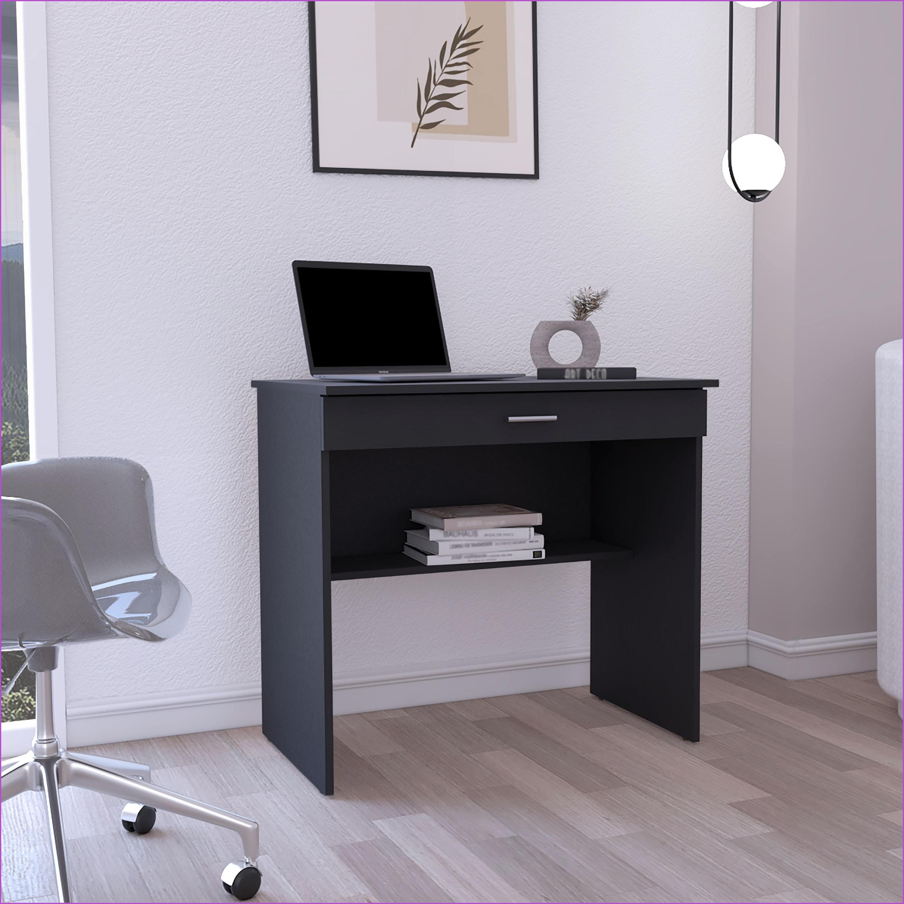 Desks, 31.5inW Compact Writing Workstation with Drawer and Lower Shelf, Black, Engineered Wood