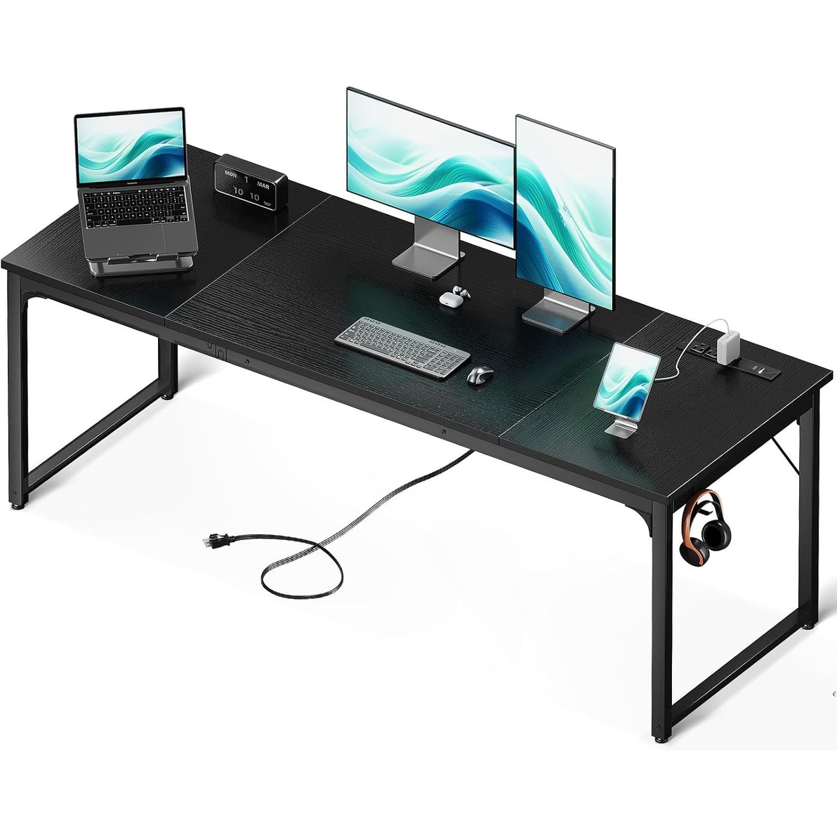 71 Inch Large Office Desk with USB Ports, Study Writing Desk, Black