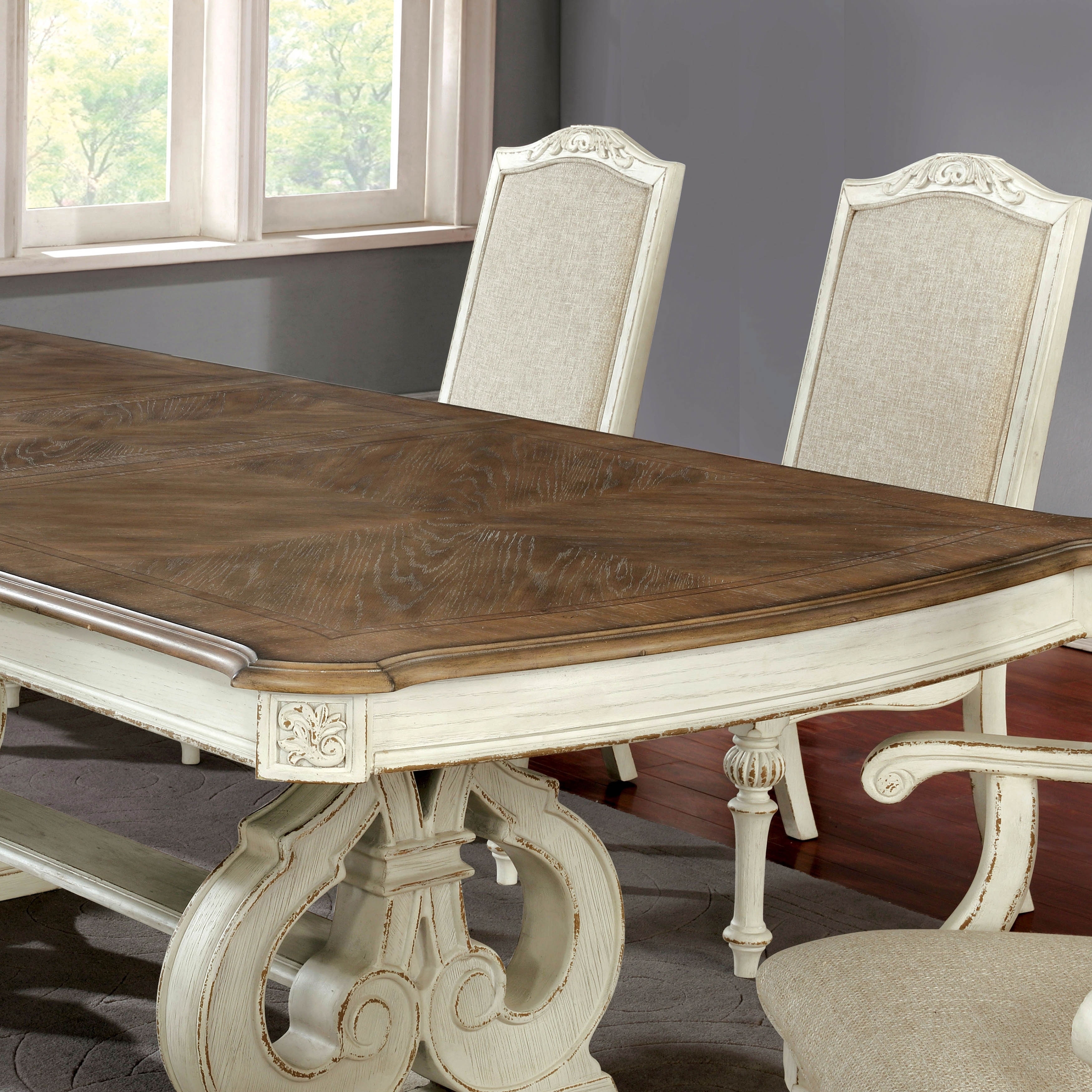 Rustic Style Multifunctional dining table, suitable as a family daily dining center, or host parties.Antique WhiteSolid Wood, Wood Veneer, Others18" Expandable Leaf