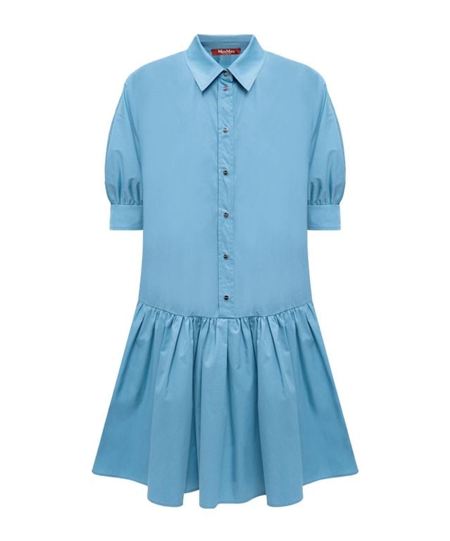 Women's Max Mara Dresses Popeline - Blue - Casual dresses Short-sleeve shirt dress in light blue with a pointed collar and a concealed button placket running to a dropped waist. The upper bodice has a fitted shirt construction with puffed short...