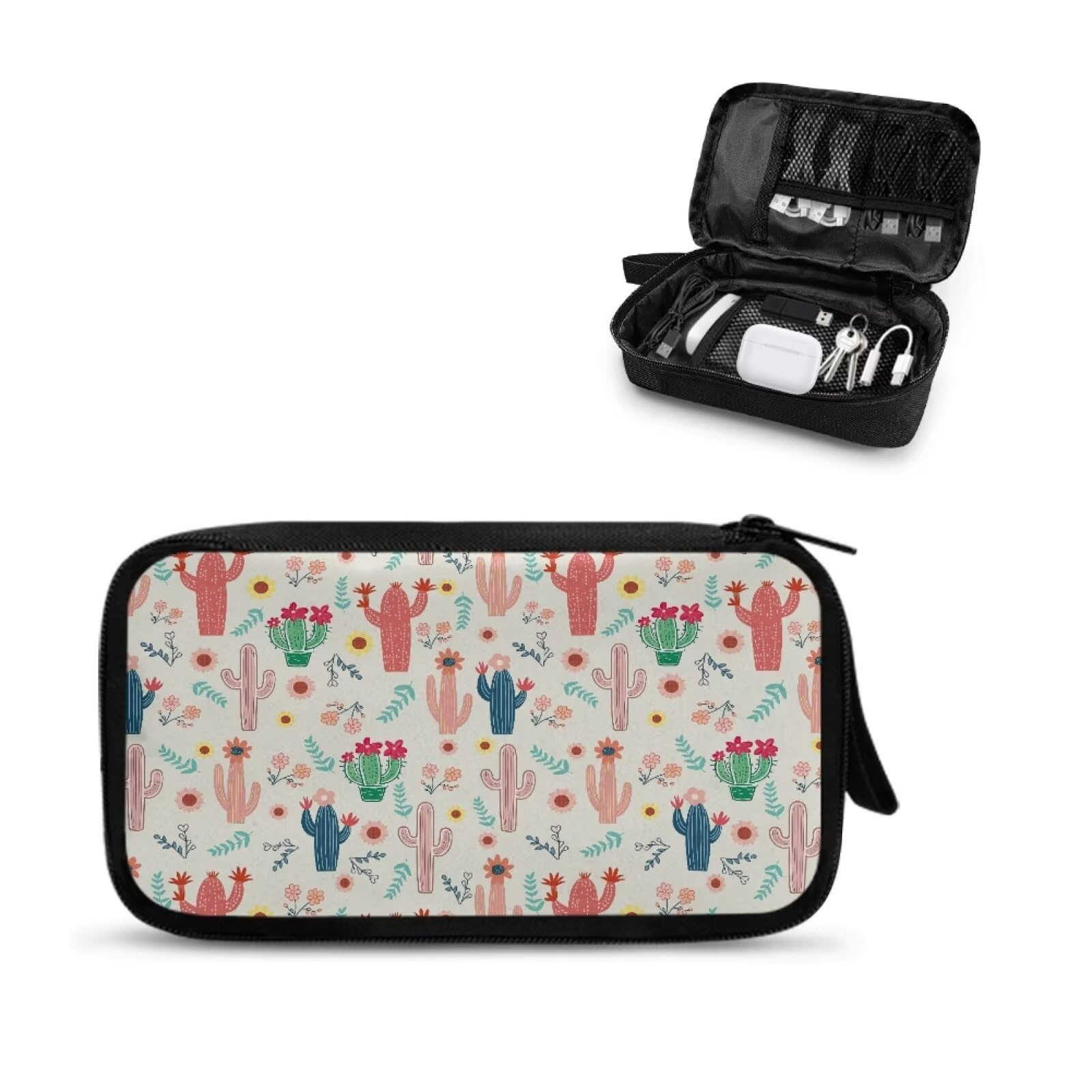 Nittanovaca Cactus Print Electronics Organizer Travel Case, Shockproof Travel Cable Organizer Bag, Large Capacity Travel Cable Organizer Pouch,