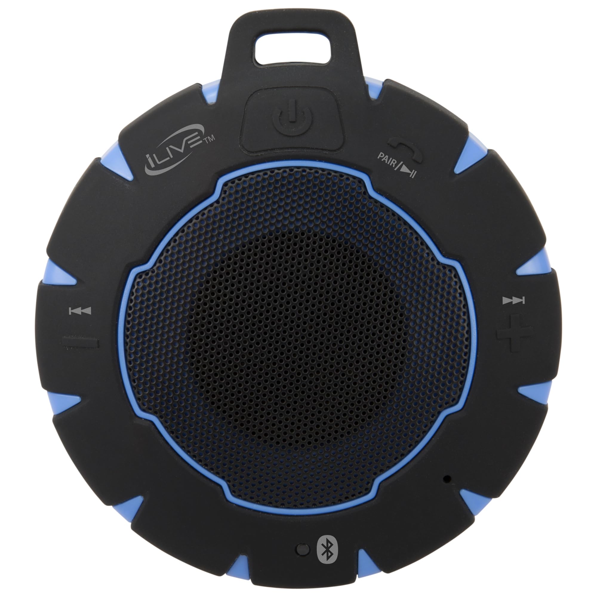 iLive Electronics Waterproof Wireless Speaker, Includes Detachable Carabiner Clip and Micro-USB to USB Cable, Black/Blue (iSBW157BU)