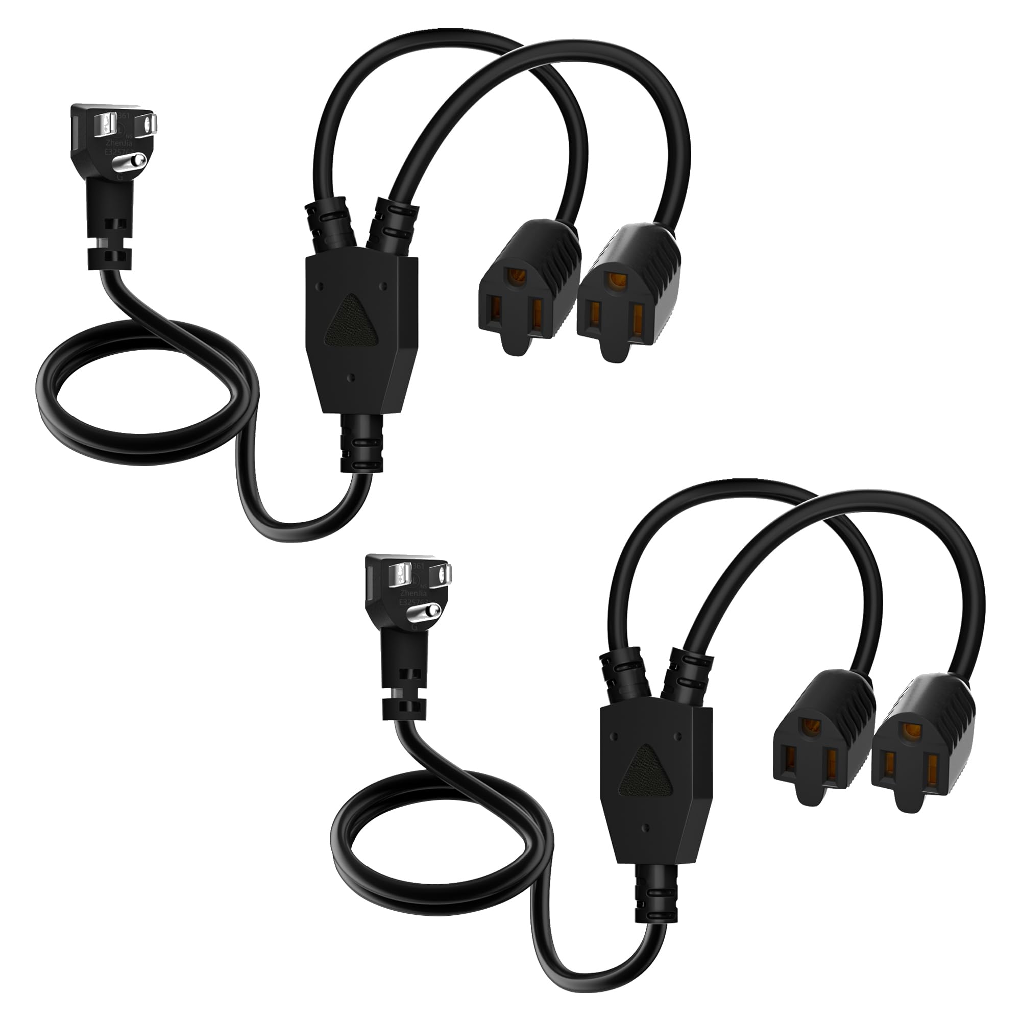 Elecan 3-Prong Y Splitter Power Extension Cord 2 FT/2 Pack, 90-Degree Angled Flat Plug 1 to 2 Way Outlet Space Saver, Heavy Duty Weatherproof SJTW,