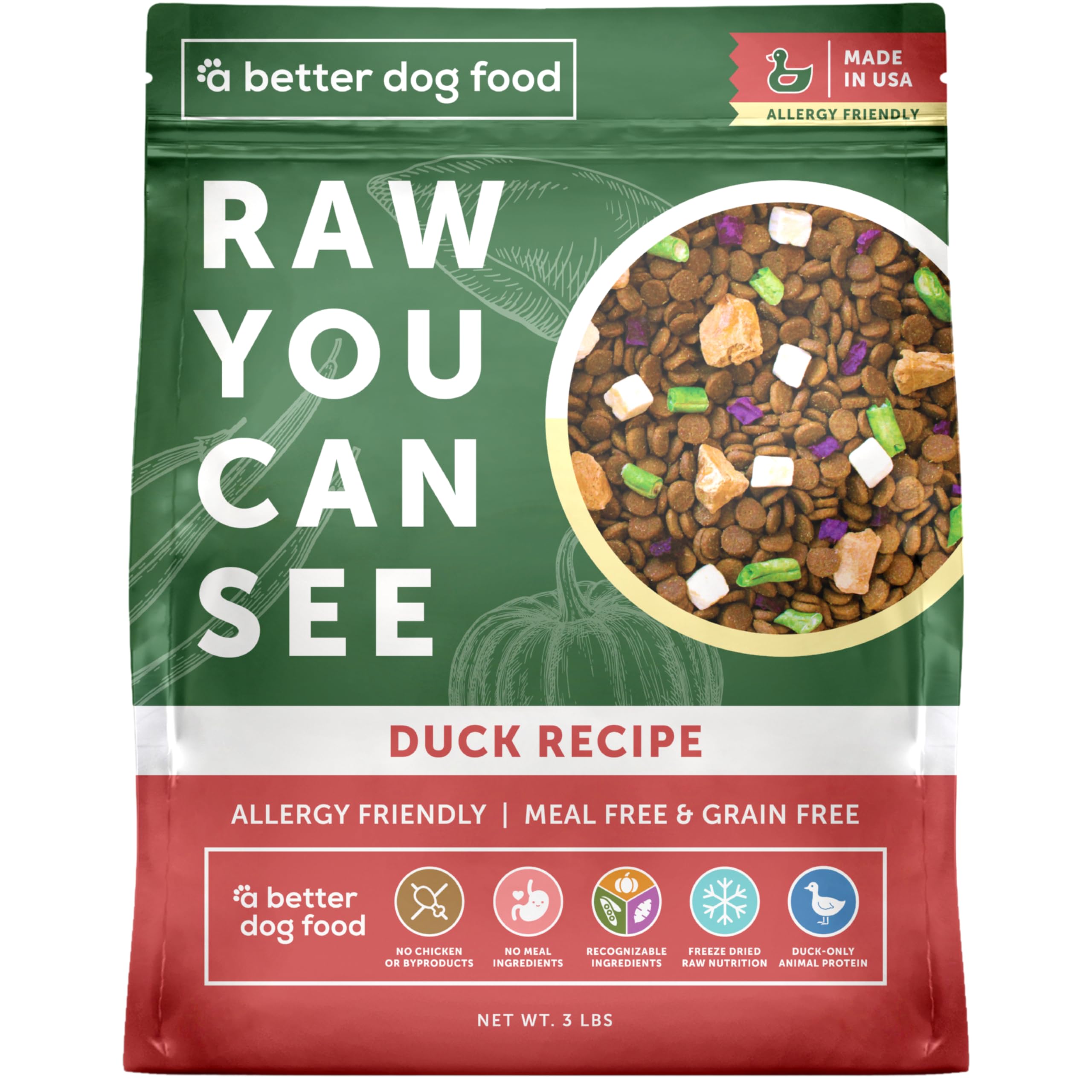 A Better Treat | Allergy Friendly Duck Dry Dog Food | Raw You Can See | No Chicken, Duck Only Animal Protein, No Meal Ingredients, Grain Free |