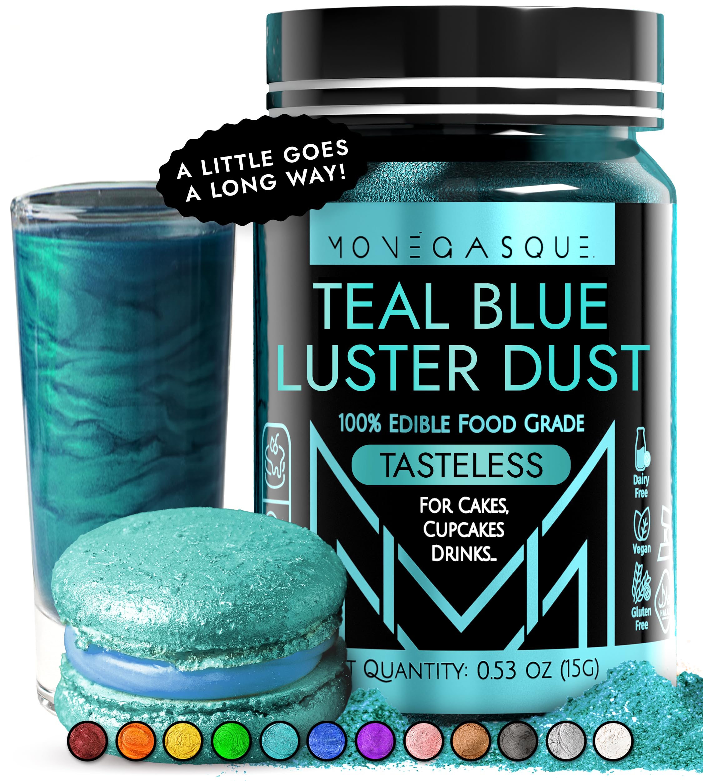 MONÉGASQUE Teal Blue Edible Glitter for Drinks 15g – Edible Glitter for Cakes & Cocktails Shimmer – Cocktail, Cake, & Cupcake Luster Dust Spray – Teal