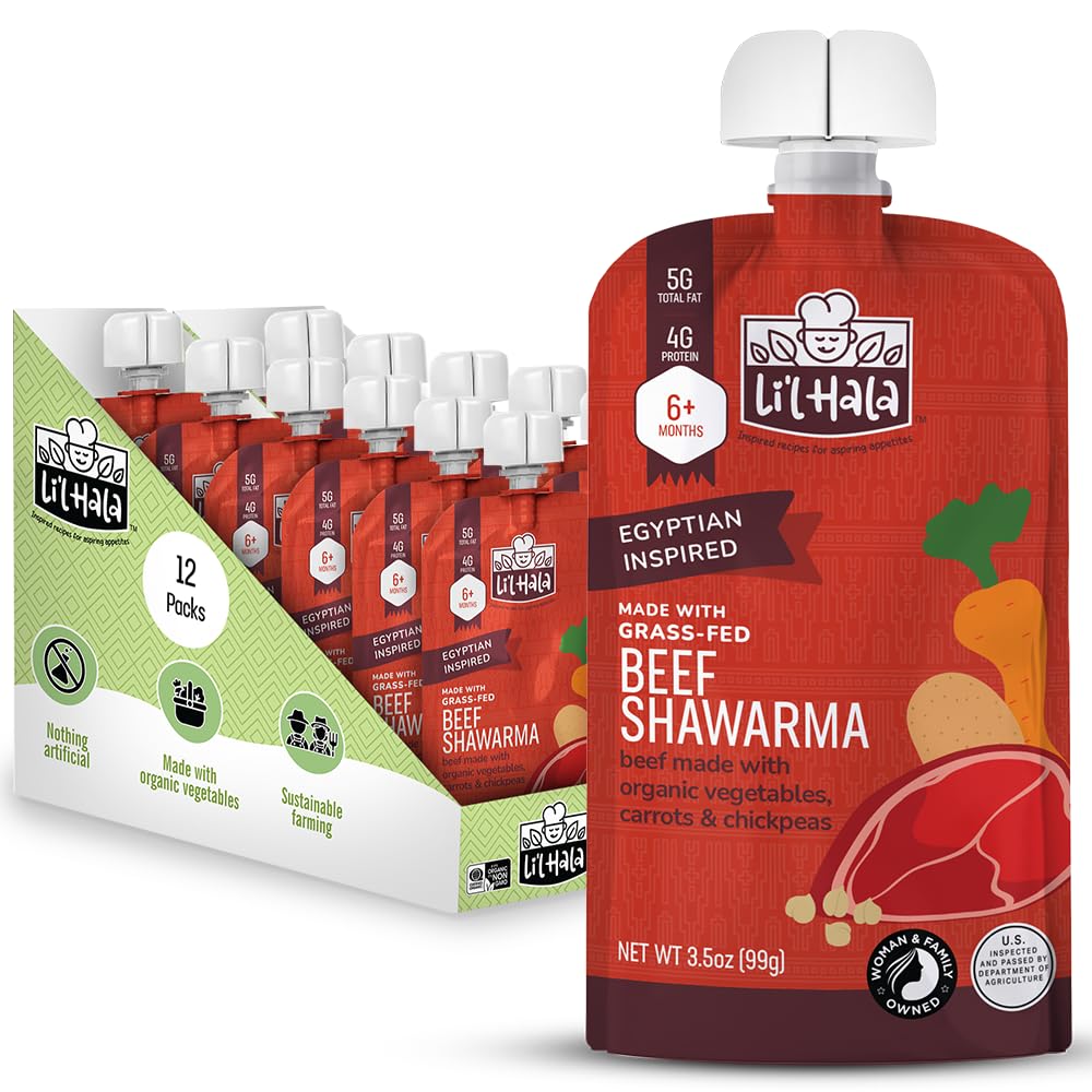 Li’l Hala Foods - Baby Meat Pouches – Grass-Fed Beef Baby Food - Beef Shawarma & Organic Veggies – Toddler Puree with Meat – High Protein, Healthy