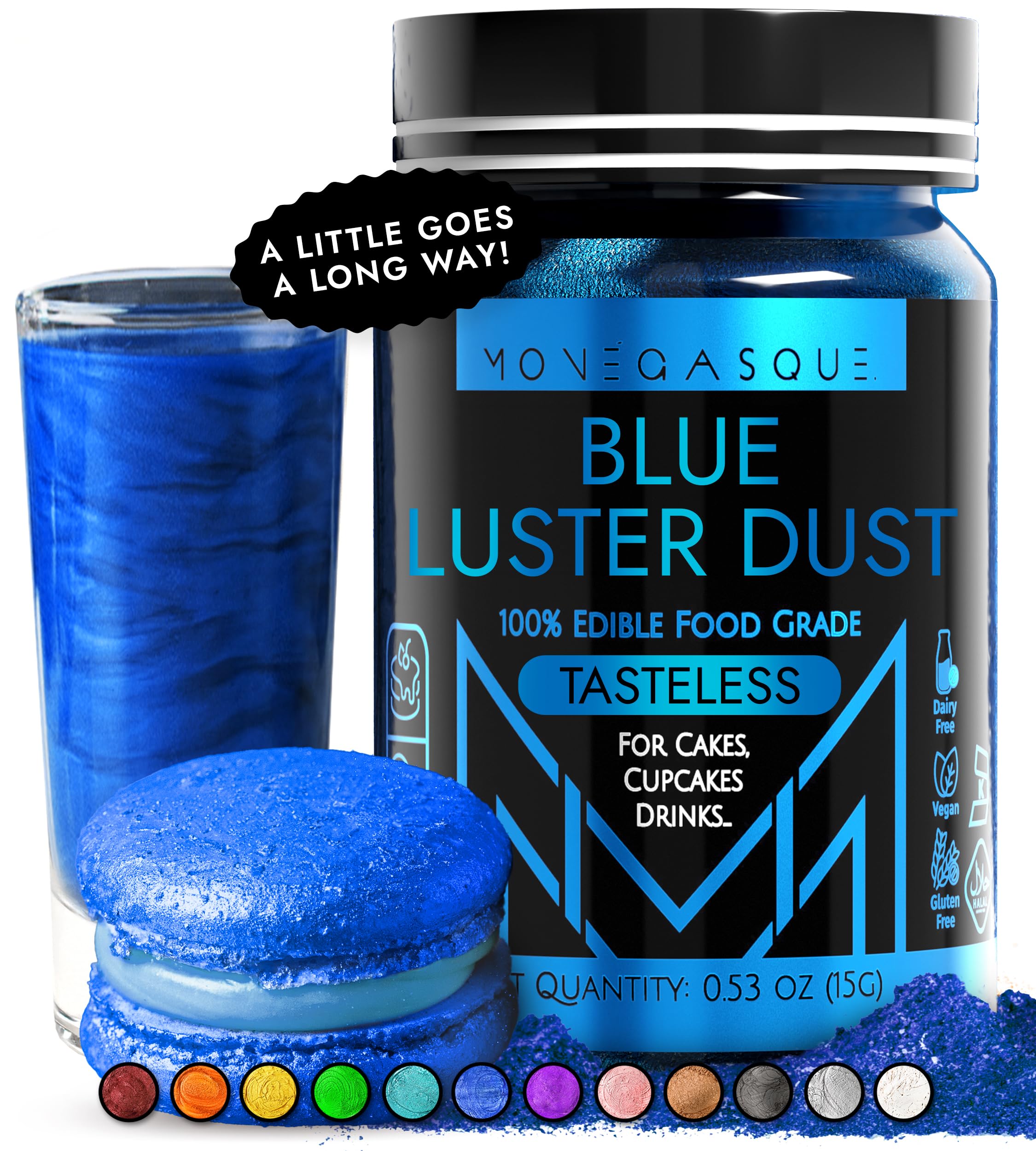 MONÉGASQUE Blue Edible Glitter for Drinks 15g – Edible Glitter for Cakes & Cocktails - Blue Luster Dust for Cocktail, Cake Decorating, & Food Spray -