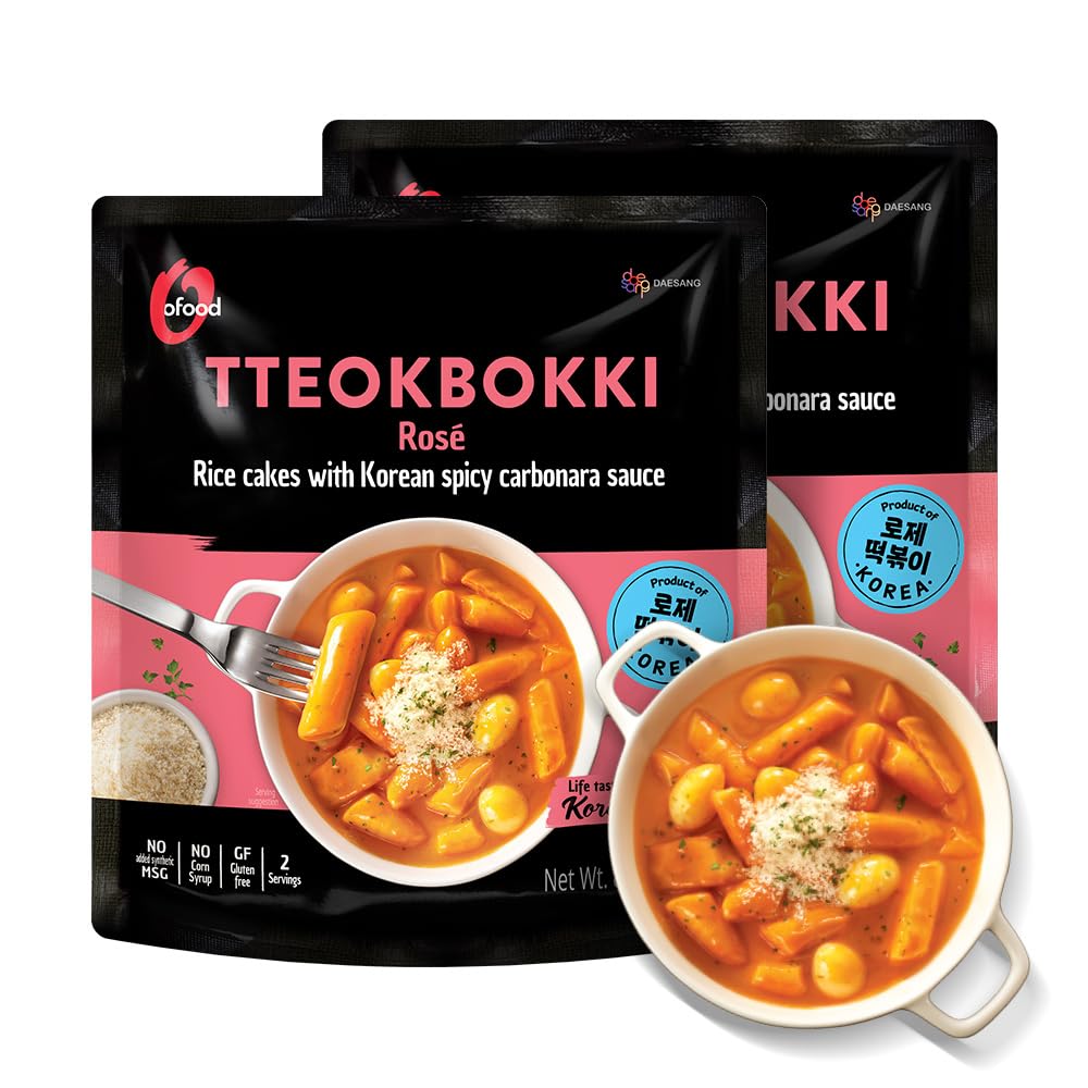 Tteokbokki Korean Rice Cakes – [Rose/Spicy Carbonara | Pack of 2] – Gluten Free | Ready in 3 Minutes | 0 Cholesterol/ 0 Trans Fat | 2 Servings Spicy