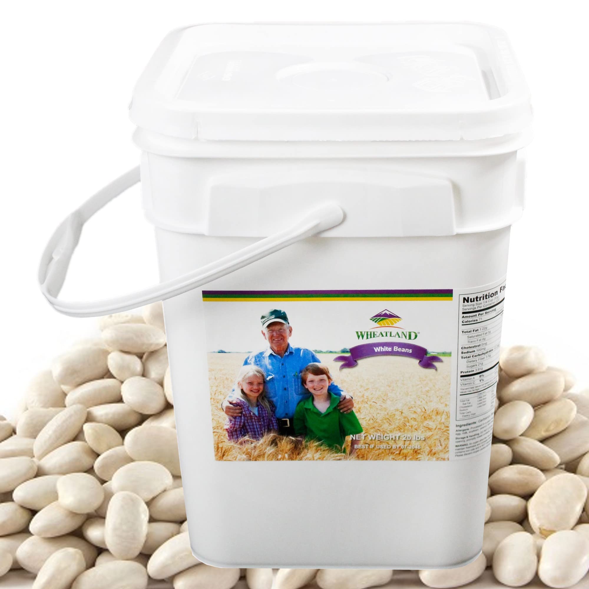Wheatland™ White Beans • Premium Packaging • Mylar, Oxygen Absorber & Bucket Provide 25 Year Shelf Life • Lab-tested ISO 17025 Verified Chemical-Free