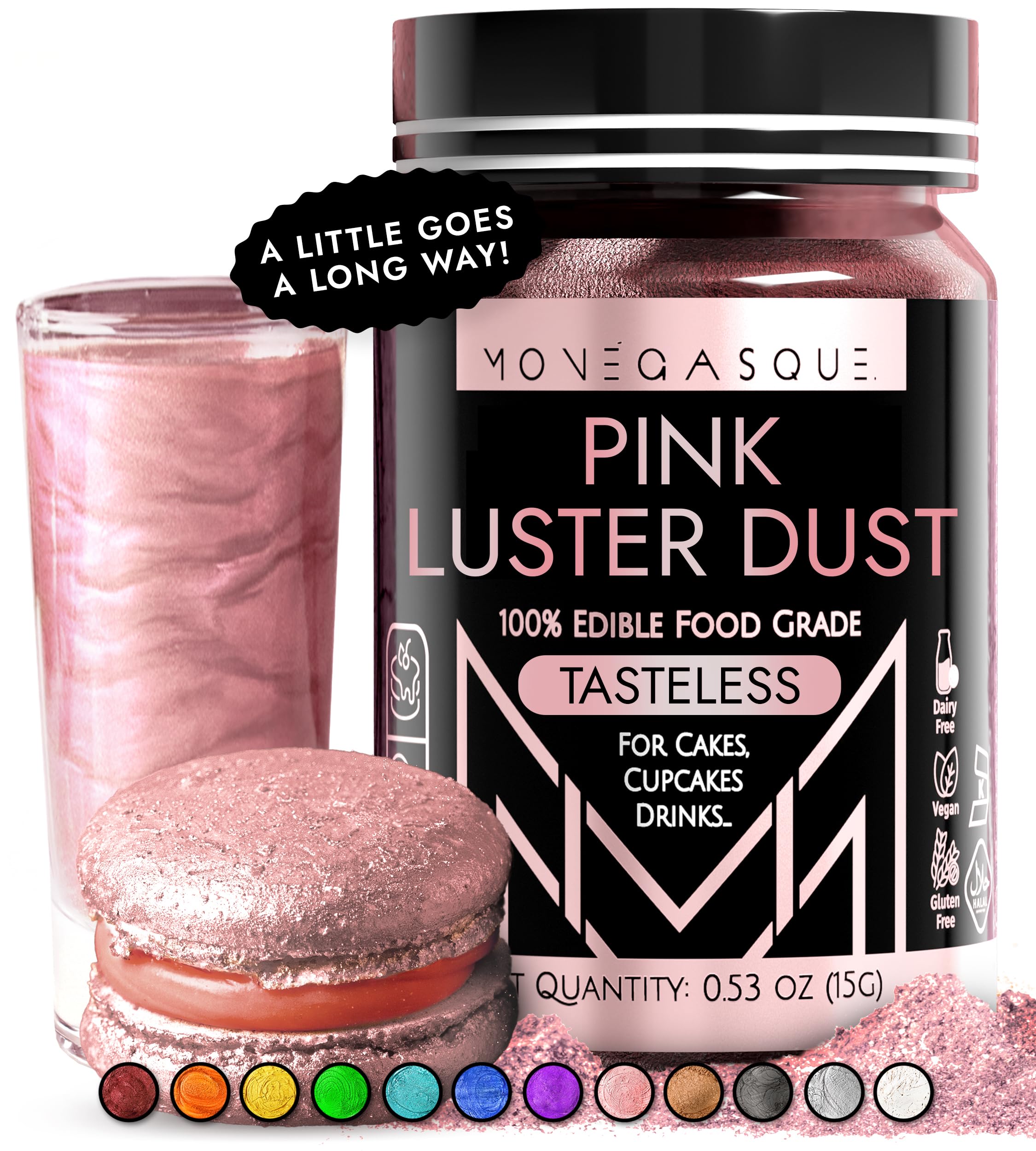 MONÉGASQUE Pink Edible Glitter for Drinks 15g – Pink Edible Glitter for Cakes – Luster Dust for Drinks, Food, & Cake Decorating – Cocktails & Cake