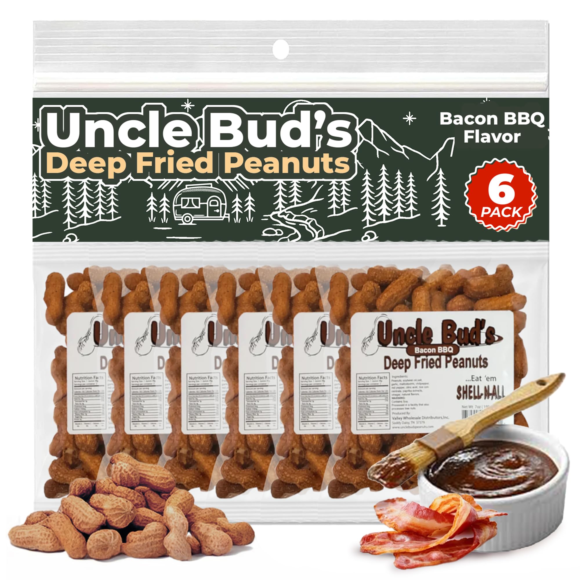 Uncle Bud's Deep Fried Peanuts In Shell (6-Pack) | Bacon BBQ Flavored Peanuts, Organic Peanuts, Nuts Individual Packs, High Protein Snacks, Individual