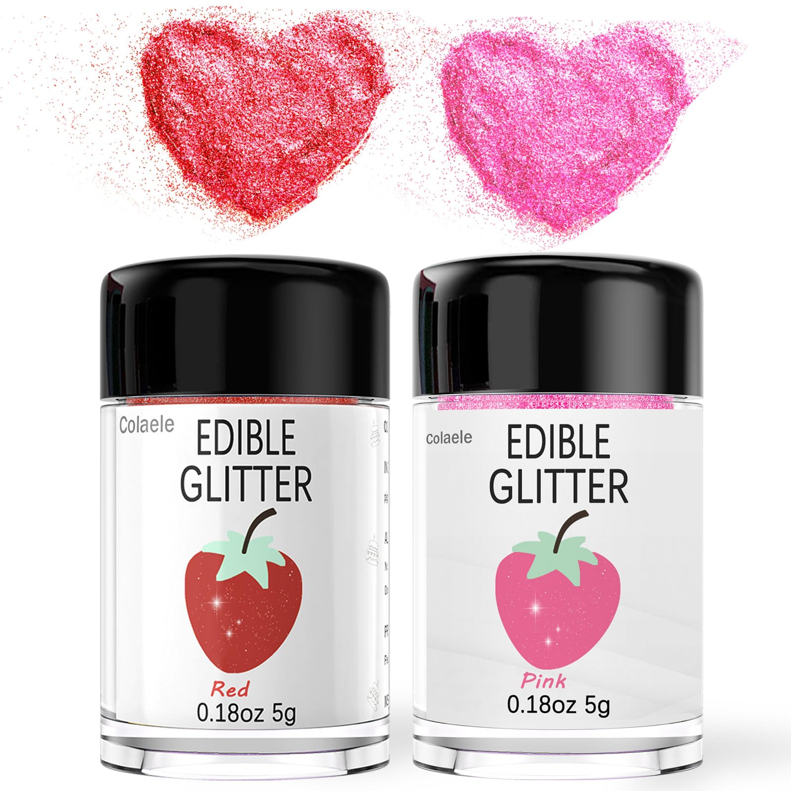 2 Edible Glitter Dust Colors Are Available - Includes: Pink, Red, 5 Grams Each Jar. It is an ideal choice set for Valentine's Day, Halloween, Christmas, Wedding, and more holidays to decor. Made of Premium Food Grade Material - 100% MSDS-certified food ingredients! Edible Glitter for Drinks,Made of