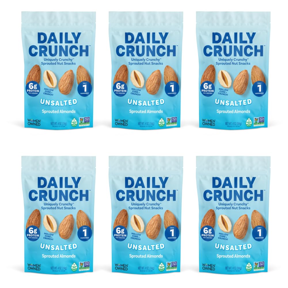 Daily Crunch Sprouted Almonds and Dehydrated nuts for a Unique Crunch, Keto Friendly, Non-GMO Zero Seed Oils, Gluten Free 4oz (6 Pack, Original)