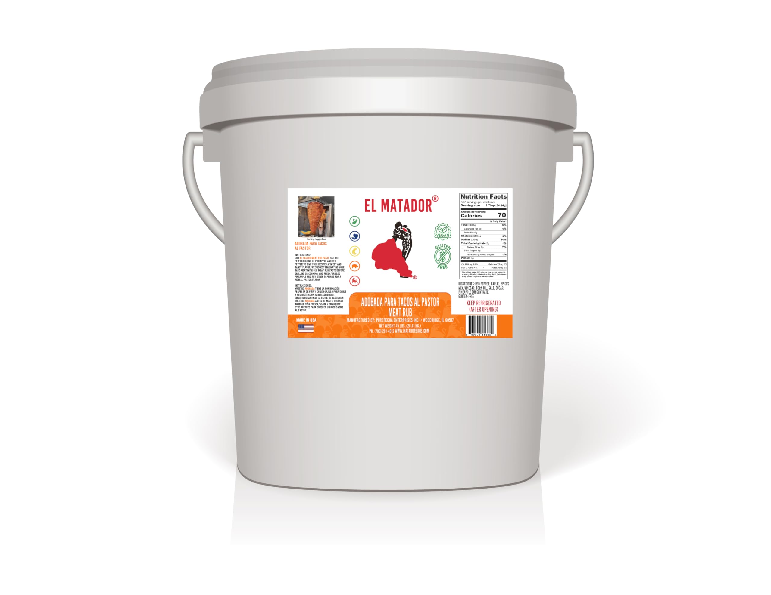 El Matador Adobada Para Tacos Al Pastor - 45lb Bulk Mexican Marinade for Tacos Al Pastor- Commercial Use & Food Service Adobo/Adobada (Al Pastor)