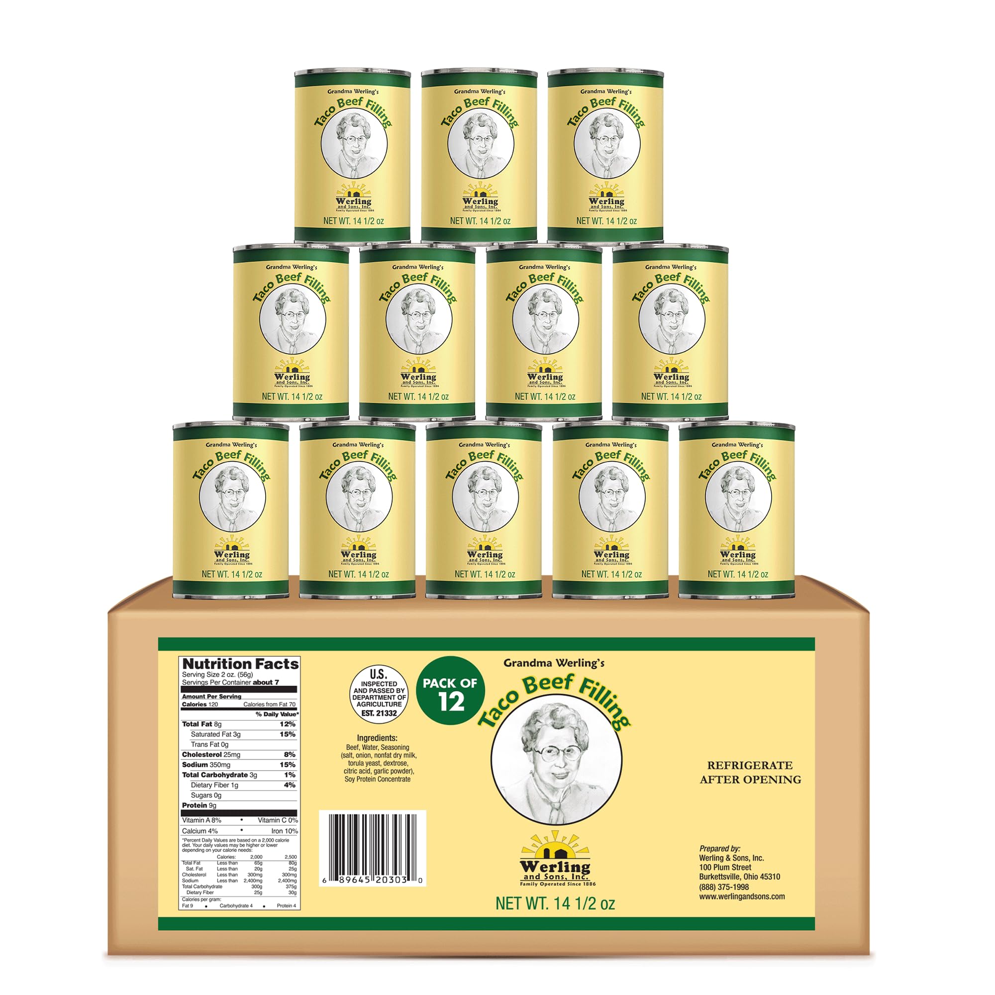 Werling & Sons Taco Beef Filling 14.5 Oz โ Fully Cooked, Heat & Serve | Premium Shelf-Stable Canned Meat | For Everyday Meals, Emergency Food Storage,