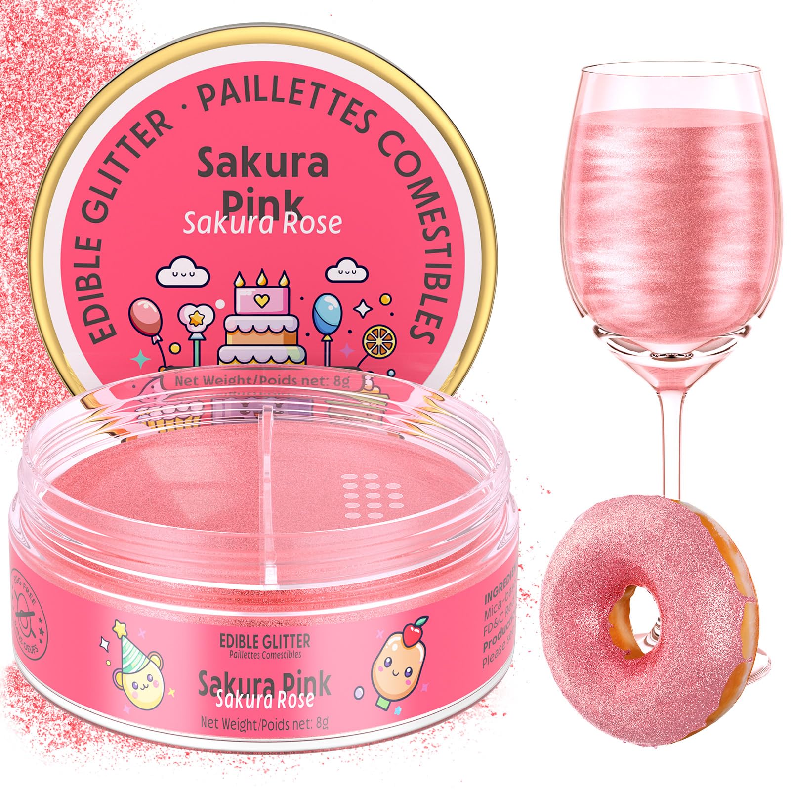 Safe & Non-Toxic -100% edible food-grade glitter powder in 0.28 oz/8 g. Our edible glitter is made from food-grade ingredients that is vegan-friendly, gluten-free, dairy-free, non-GMO, it will not alter the original taste or texture of beverages and foods. so everyone can use and enjoy this product
