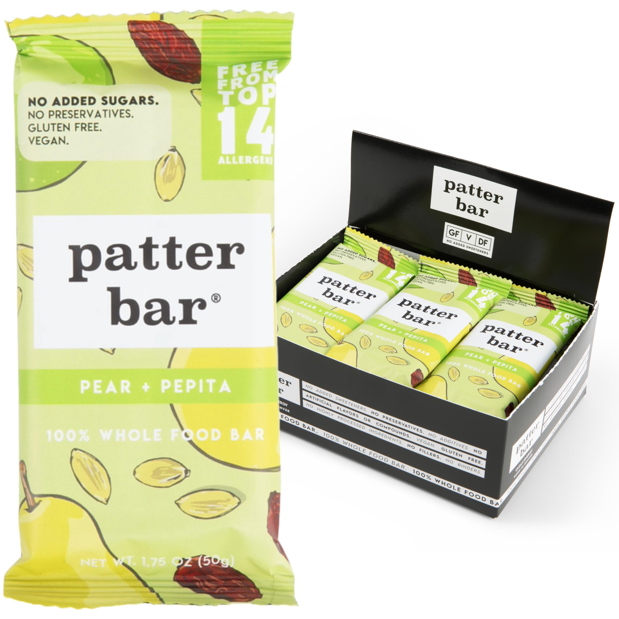 Patterbar Energy Bars - 100% Whole Foods Bar, Gluten Free, Dairy Free, No Added Sugar, Vegan, Whole30 | Plant Based Paleo Snacks, Vegan Protein Bar,
