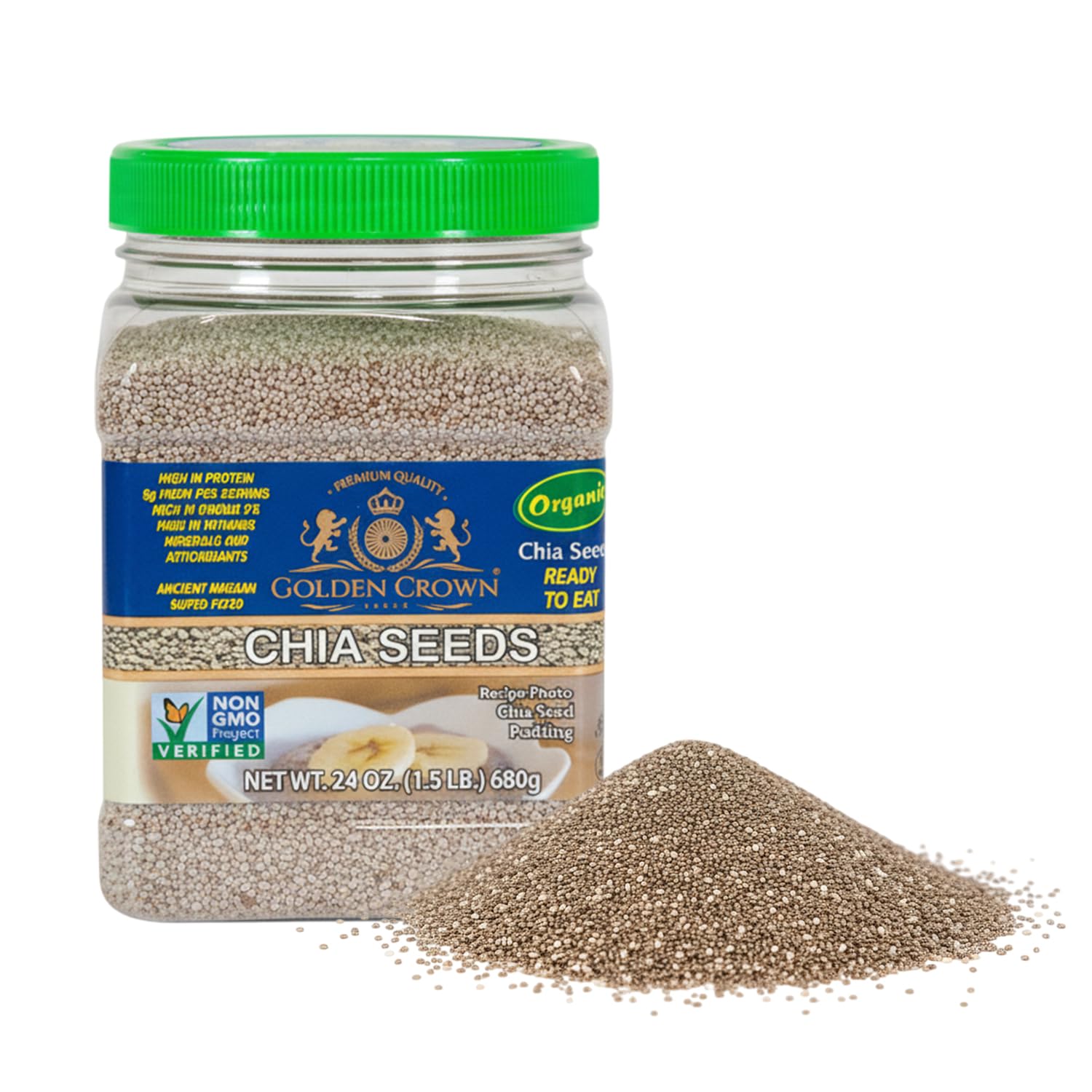 Golden Crown Organic Chia Seeds | Gluten Free, Non GMO, & Vegan White Chia Seeds Organic | Omega-3 & Fiber to Support Energy and Satiety | Ideal for