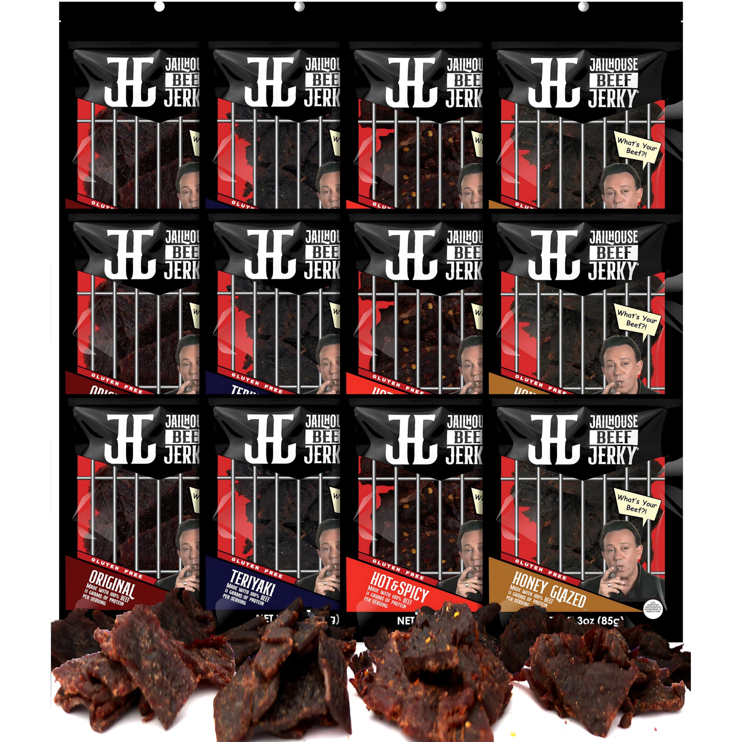 UNLEASH YOUR POWER: High-Protein Fuel. 11g of premium protein per serving. Fuel your performance with Jailhouse Beef Jerky! This high-protein, serious fuel for adults energizes workouts & adventures. Made from 100% lean cuts, it's the healthy snack for your active life. Power up with real meat! THE