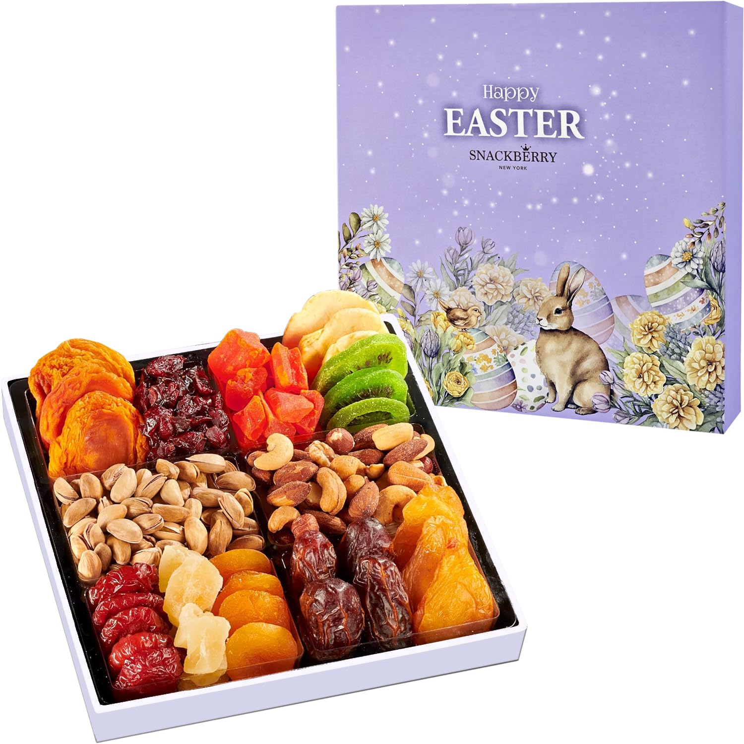 Easter Dried Fruit & Nuts Gift-Basket Arrangement Platter, Gourmet Food Snack Box, For Easter Day, Healthy Kosher, Her Him, 12 Snackberry Assortment (