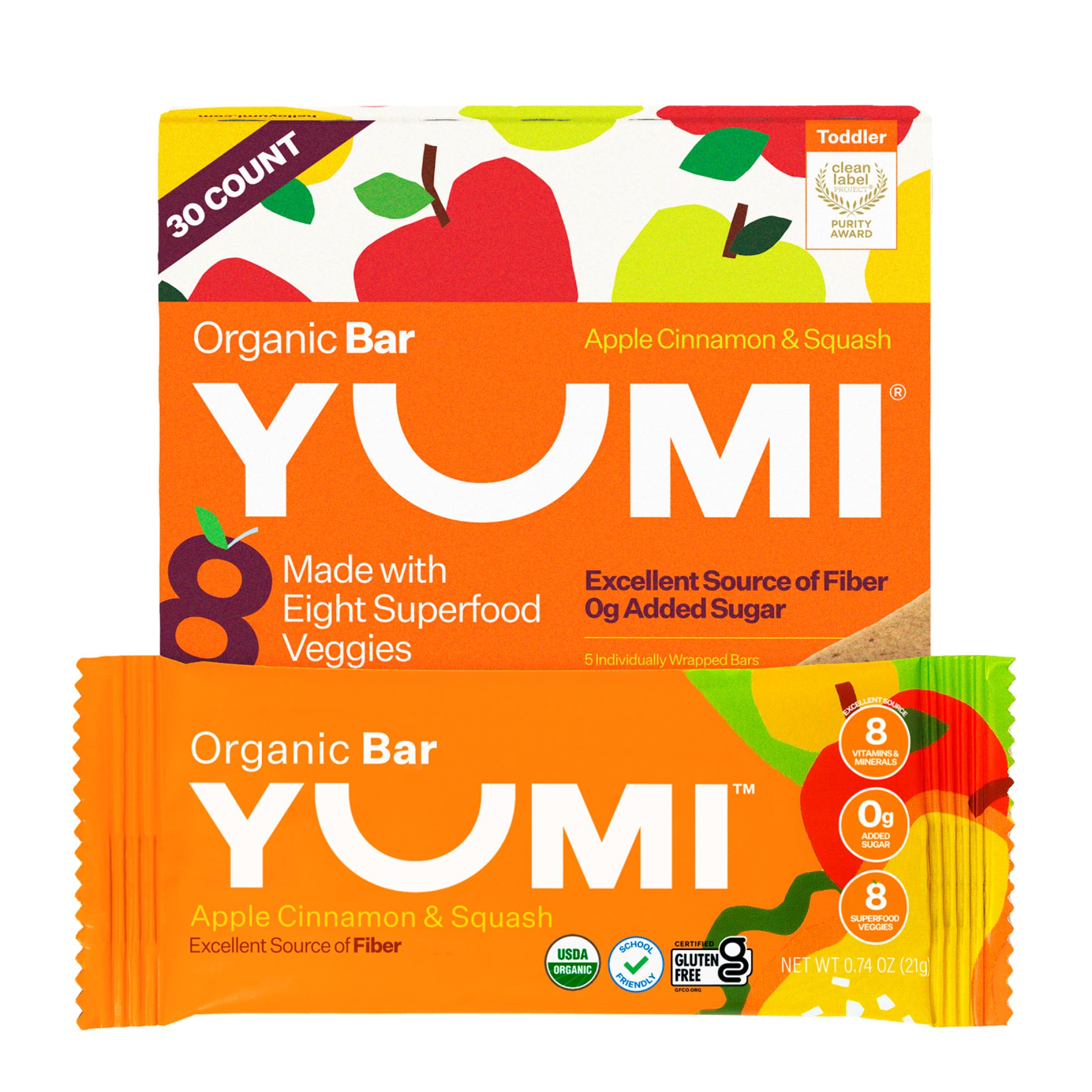 Yumi Organic Toddler Snacks Bars - Gluten-Free, No Added Sugar, 7+ Vegetables, Soft-Baked Crust Yumi Bars, Healthy Toddler Organic Snacks - School