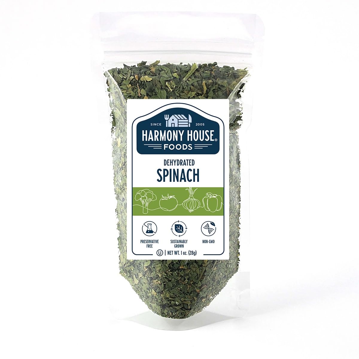 Harmony House Dried Spinach Flakes β Dehydrated Vegetables For Cooking, Camping, Emergency Supply and More (1 oz, ZIP Pouch)
