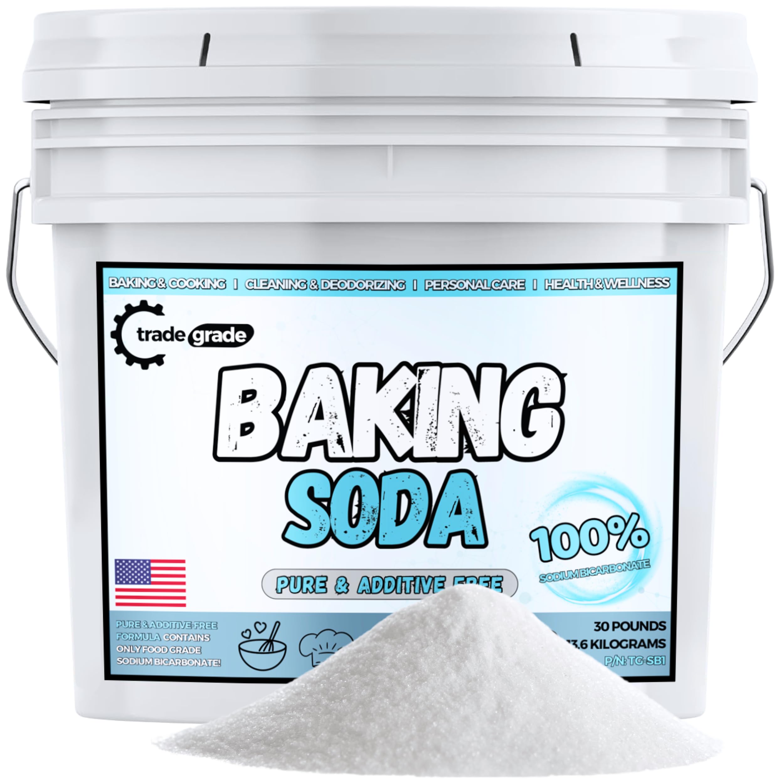 TradeGrade Pure Baking Soda Powder β 30 lb Bucket, Sodium Bicarbonate Powder | Premium Food-Grade for Baking, Bread, Cookies & More | Baking Soda for