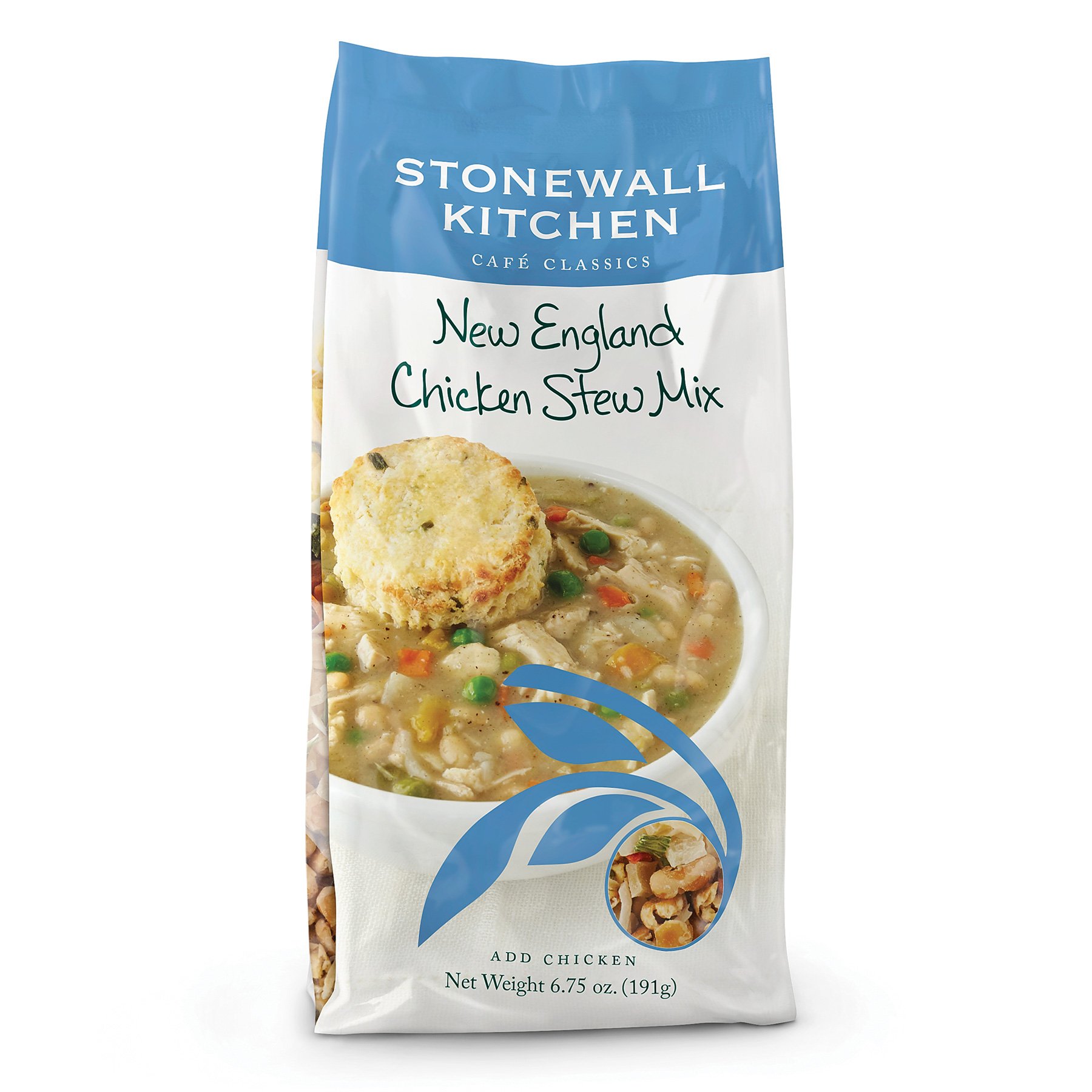 Stonewall Kitchen New England Chicken Stew Mix, 6.75 oz. This timeless classic from New England is a delicious mix of white beans, potato, onions, carrots, peas, celery, yellow pepper, thyme, sage and seasonings Add your own chicken, broth and a few common pantry items to enjoy Fans of chicken pot p
