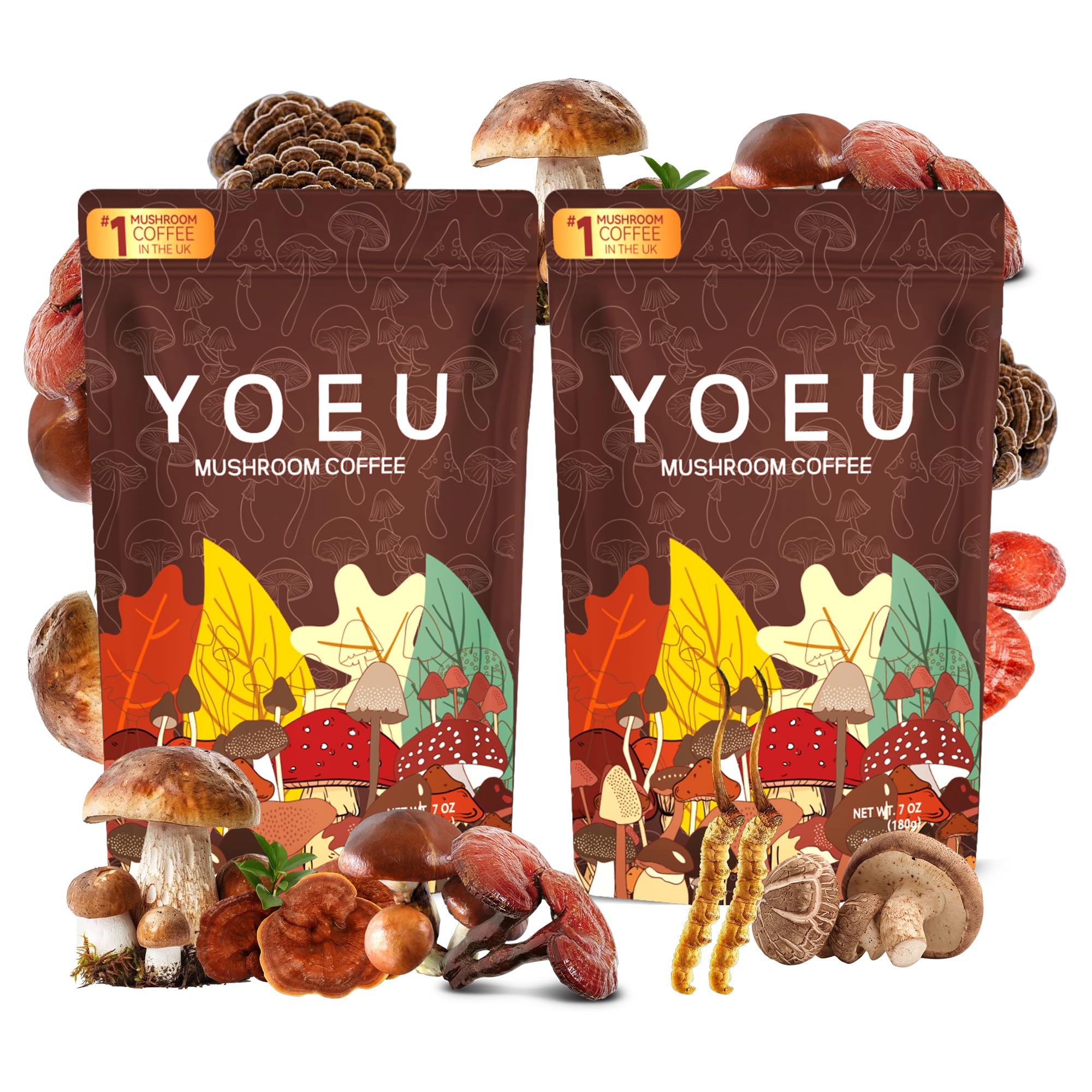 180g/2pack, Mushroom Coffee - Mushroom Coffee Organic with 12 Natural Ingredients, Includes Lion's Mane, Reishi, Cordyceps and Adaptogens, Memory and