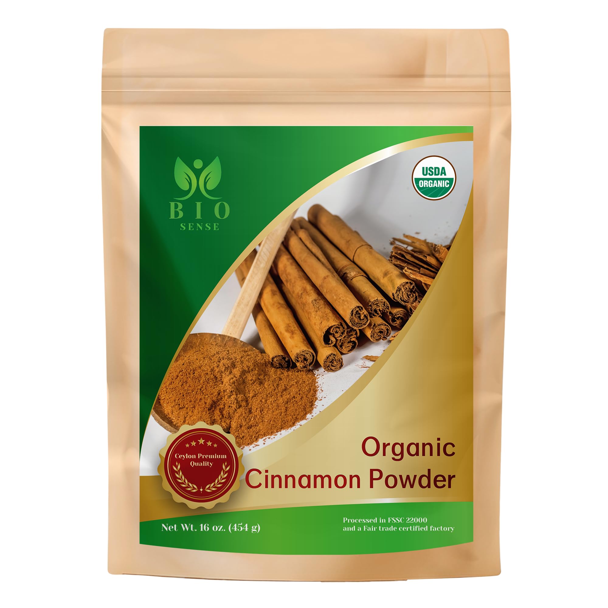 Bio Sense Ceylon Cinnamon Powder, 1 lb, Premium Grade, Gluten Free, USDA & Kosher Certified, Non-GMO, Ground Cinnamon.
