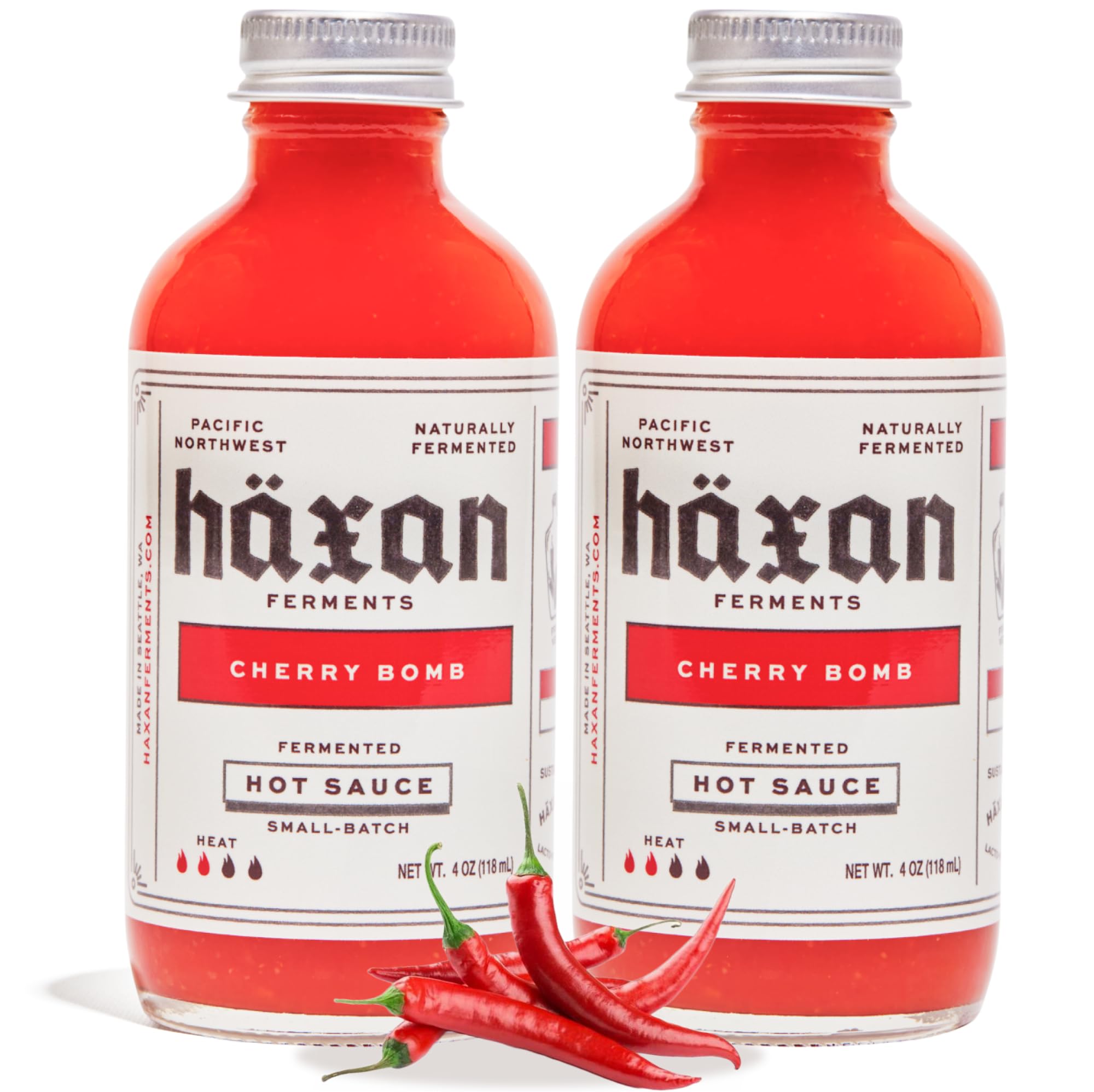 Haxan Ferments Cherry Bomb Hot Sauce (4 oz, 2 Count) – Medium Heat (Level 3/5) – Lacto-Fermented for Umami & Brightness – Perfect for Wings, Mac &