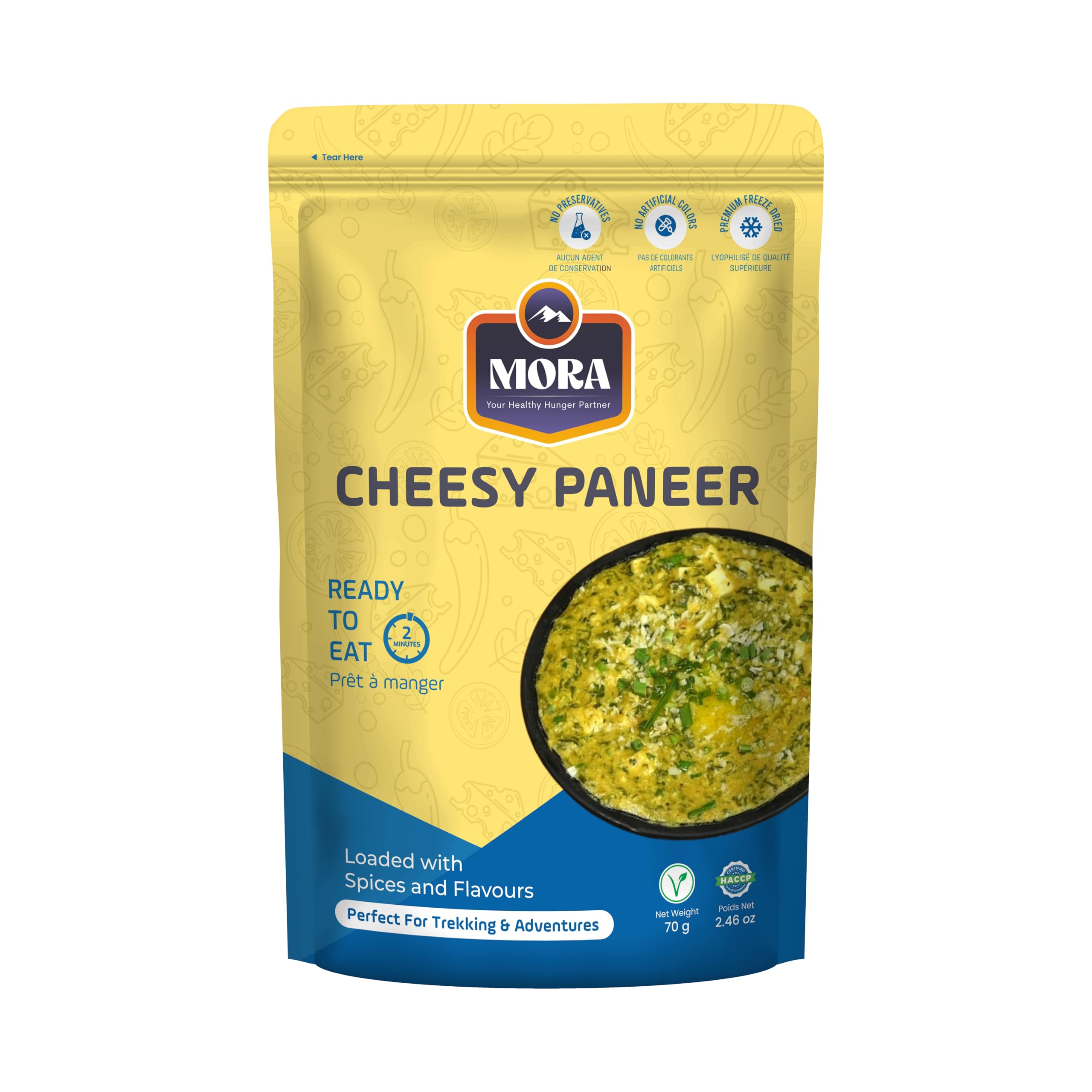 Mora Cheesy Paneer - Ready To Eat Premium Freeze Dried Instant Meal, Microwavable, Effortless Cooking, Gluten-free, Plant-based, High Protein,