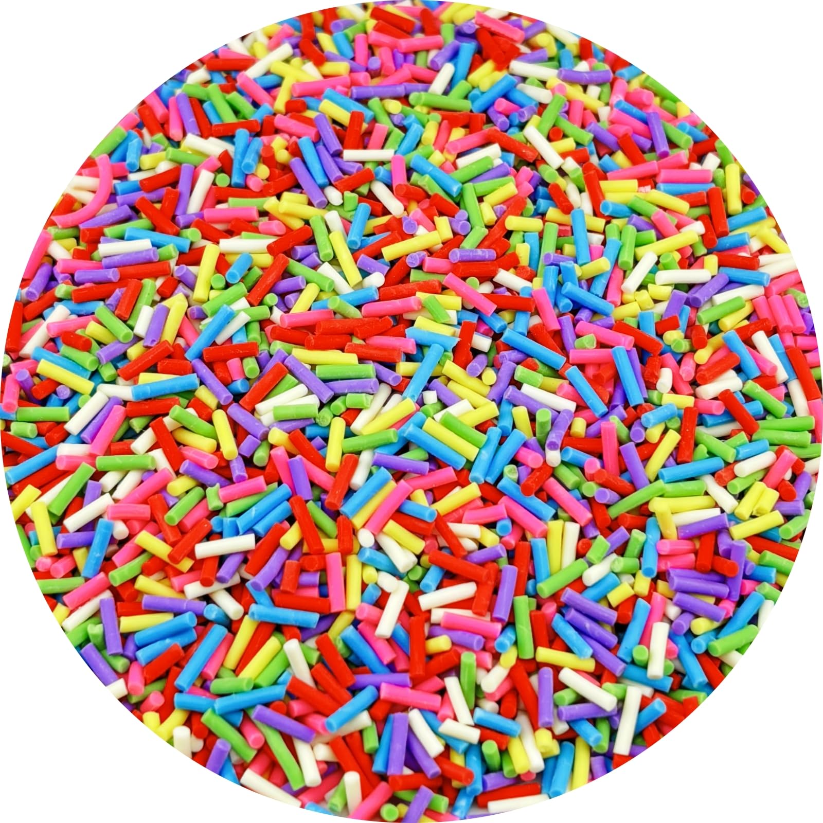 Package include: Each package include 100g polymer clay fake sprinkles, enough for your spare and replacement, keep a long time use, suitable for a lot of your handmade project. Feature: These 7mm (most of them are 7mm) fake candy sprinkles come in a variety of vibrant colors to choose from, caterin