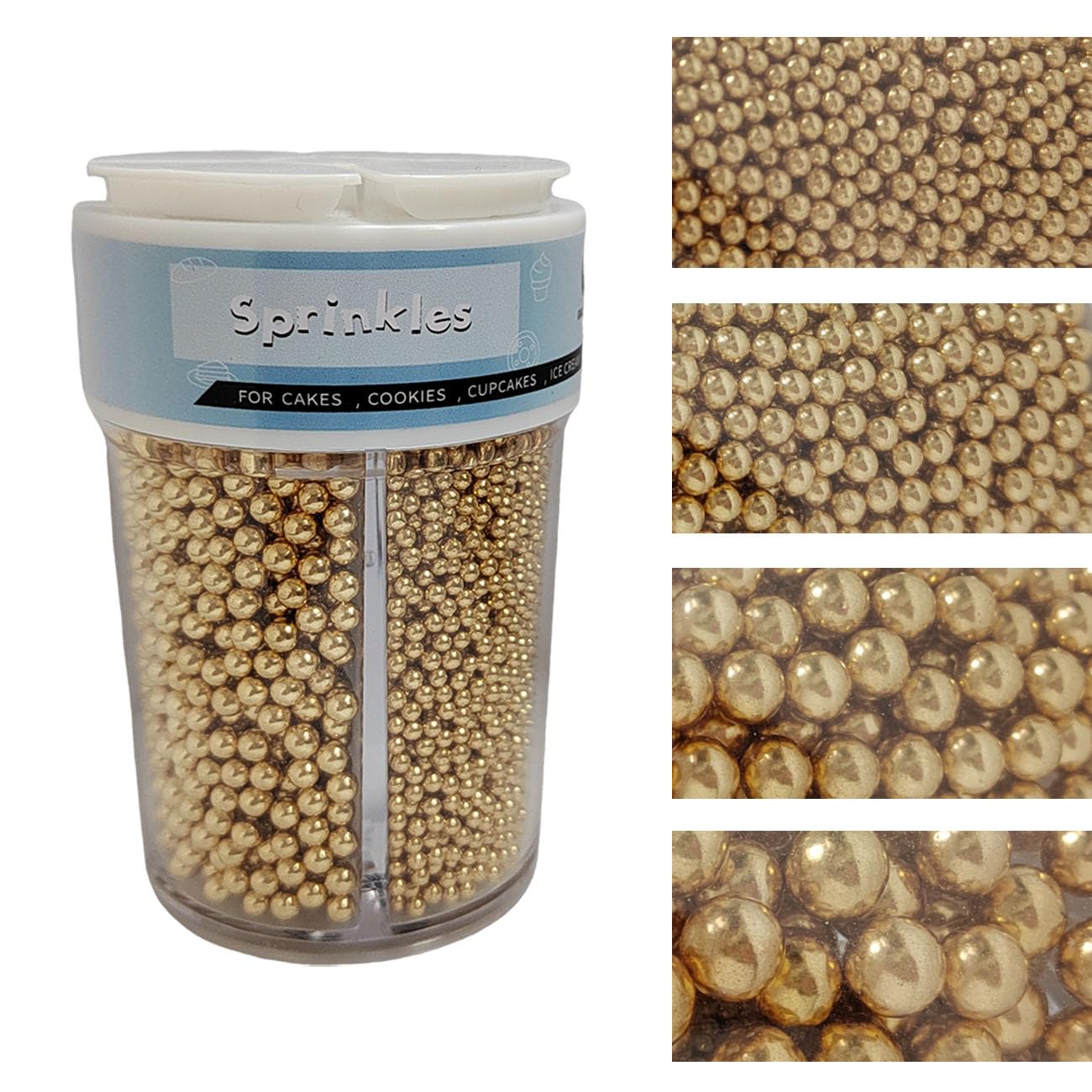 EPHVODI Sprinkles for Cake Decorating, Gold Pearl Sugar Sprinkles for Cupcake Toppers Wedding Party Halloween Christmas Supplies, 4 Sizes Sprinkles