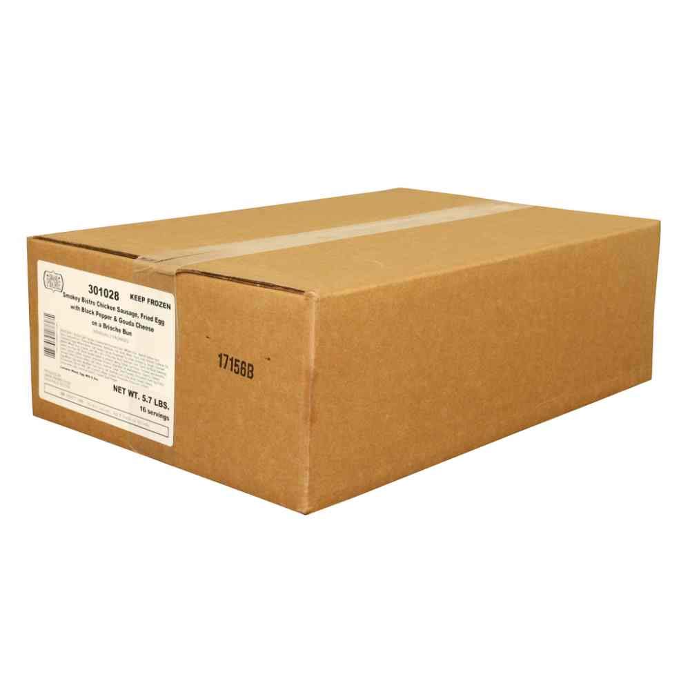Grand Prairie Smokey Chicken Sausage, Cracked Black Pepper Fried Egg Patty with Gouda Cheese on a Brioche Bun, 6.5 Ounce -- 16 per case.