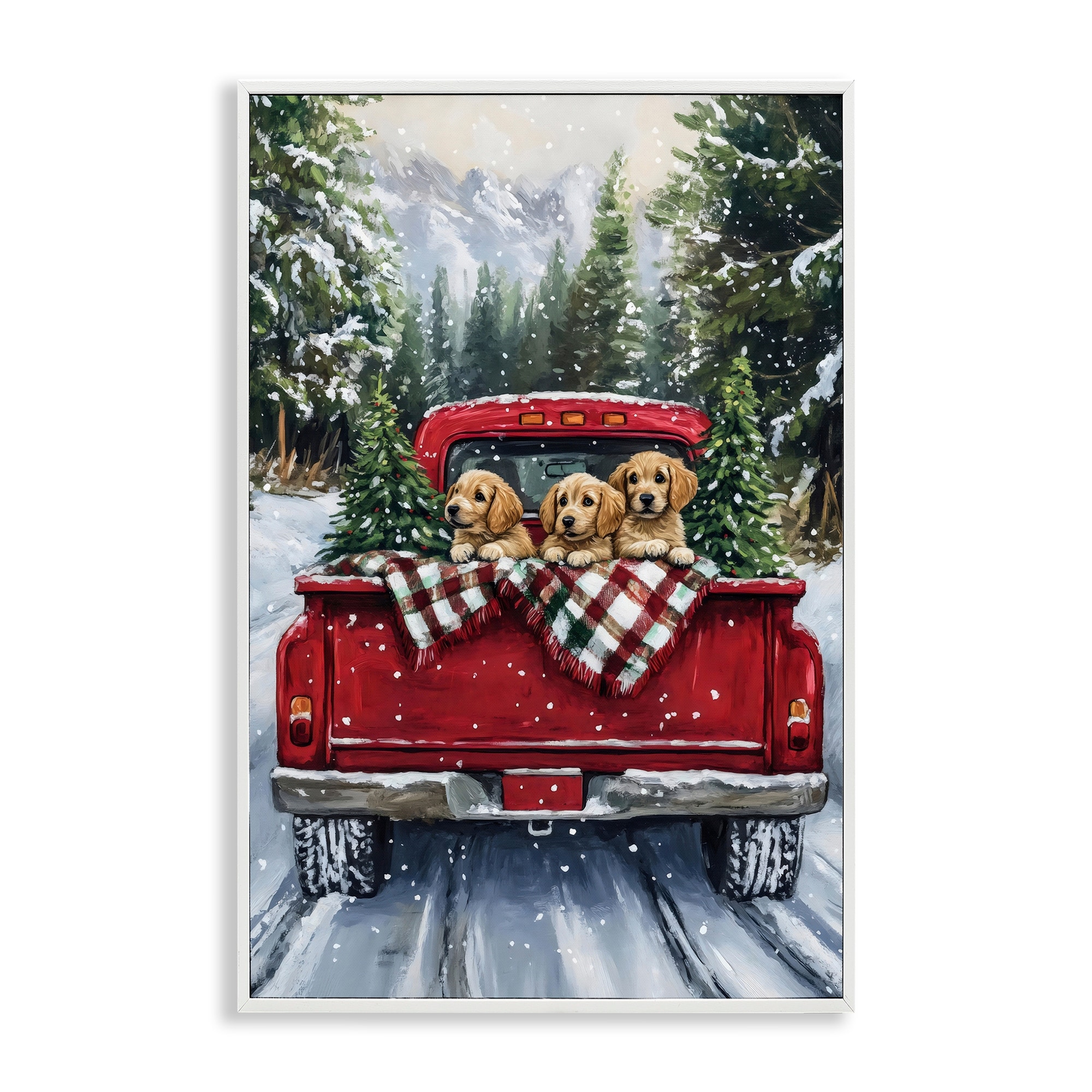 Stupell Golden Pups Christmas Truck Framed Giclee Art Design By Petal Prints Design