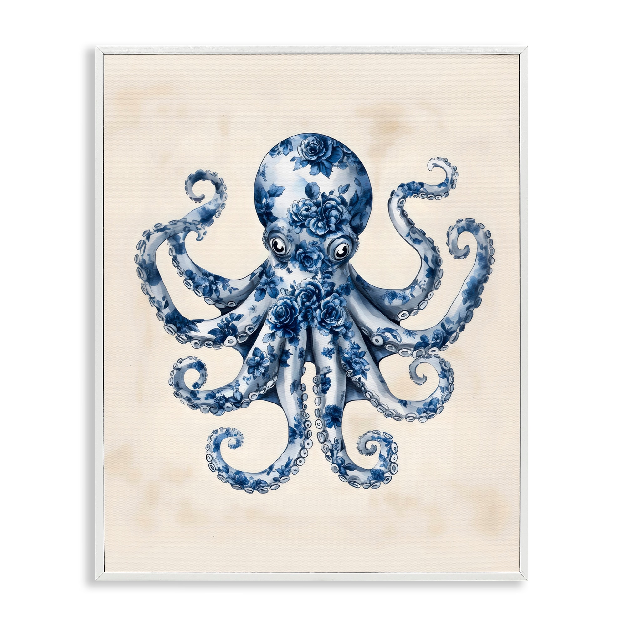 Stupell Blue Floral Octopus Framed Giclee Art Design By Arlington Prints