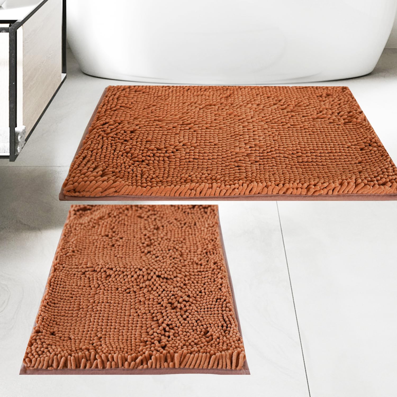 Yeaban Burnt Orange Bathroom Rugs โ Thick Chenille Bath Mats | Absorbent and Washable Bath Rug Non-Slip, Plush and Soft Rugs for Bathroom, Shower,