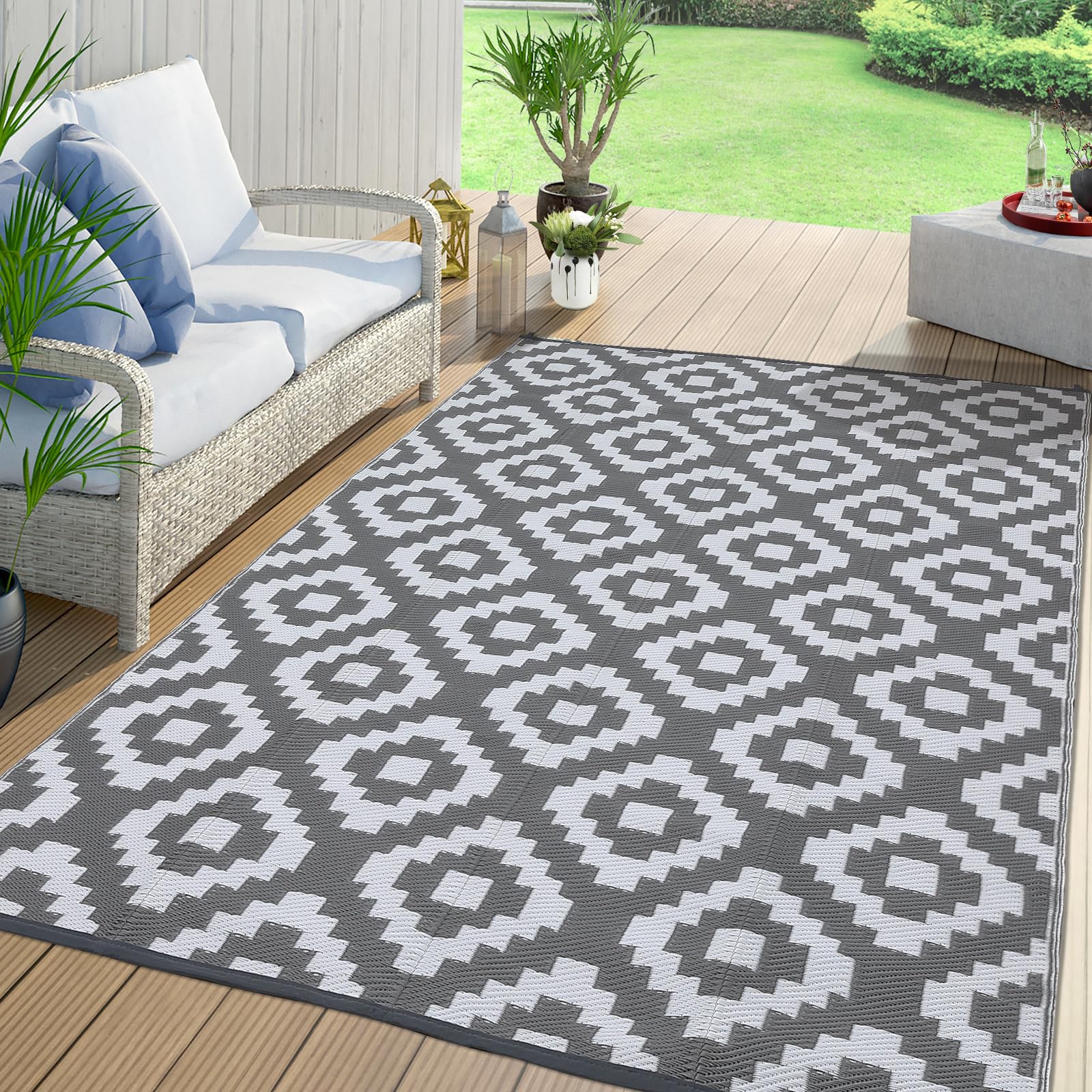 - Long-lasting & Weatherproof: Crafted from high-quality polypropylene, our FairOnly Outdoor Rug is designed to withstand rain, moisture, and UV rays, ensuring it stays vibrant and resilient in any weather. Ideal for your backyard, deck, or porch. - Modern Aesthetic: Featuring a sleek grid pattern,