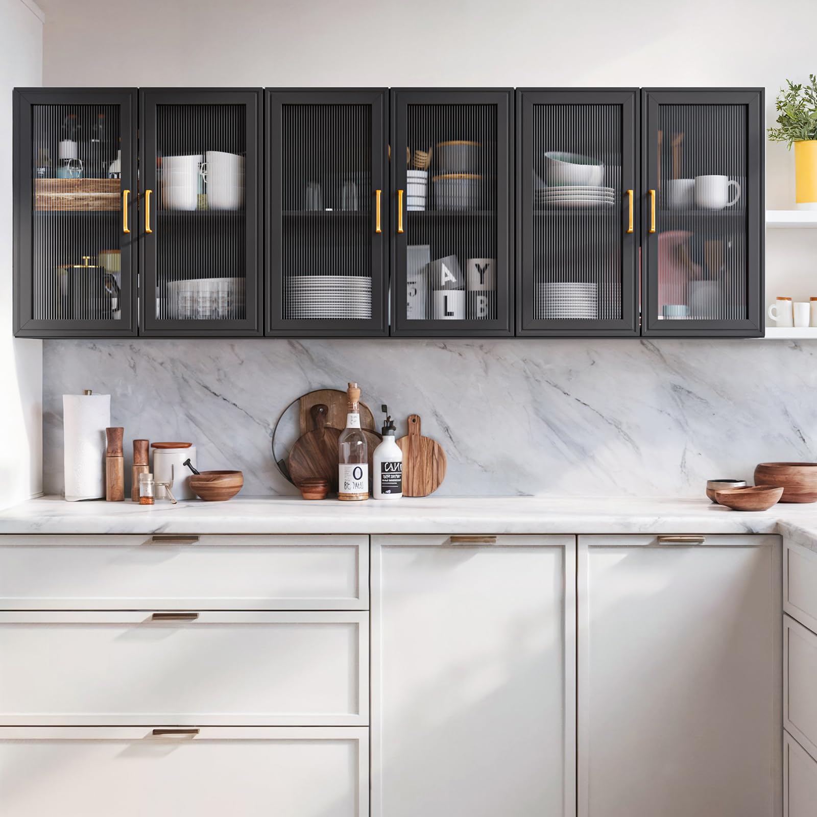 Furnaza LED Wall Storage Cabinets - Upper Kitchen Cabinets Laundry Wall Mounted Cabinets with 4 Acrylic Glass Doors and Shelf