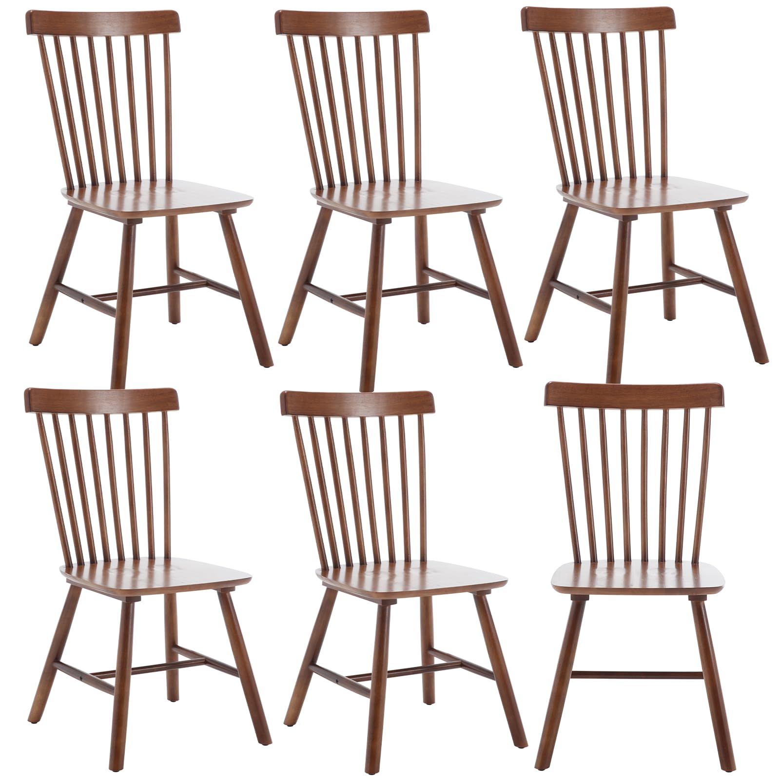 Janoray Farmhouse Style Windsor Chairs Set of 6, Vintage Kitchen & Dining Room Chairs with Spindle Back, Comfy Armless Solid Wood Side Chair for Home/